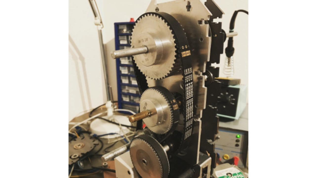 Da Well- oder Zykloidgetriebe kostenintensiv sind, wurde ein Zahnriemengetriebe (Bild 2) gewählt. Die Riemen sind leise, präzise und besitzen einen sehr hohen Wirkungsgrad von mehr als 95% bei der Drehmomentübertragung. Das notwendige Drehmoment der jeweiligen Achsen ergibt sich aus der geschätzten mechanischen Trägheit, multipliziert mit ihrer maximalen Beschleunigung. In dem implementierten System werden folgende Drehmomente erreicht: