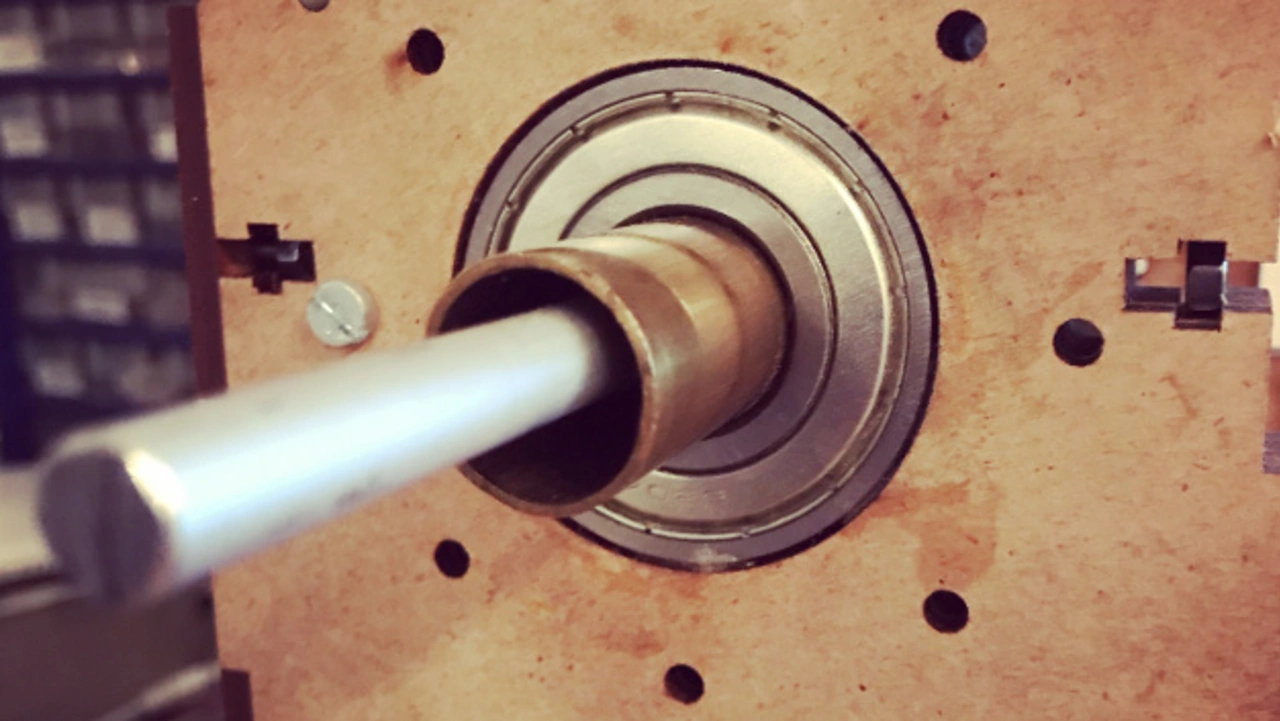 Obgleich der bereits hohen Steifigkeit der Zahnriemengetriebe, muss auch der gesamte mechanische Aufbau möglichst unnachgiebig sein, damit die Riementriebe wirklich spielfrei laufen. Deshalb wurde insbesondere bei der ersten Achse auf eine spielfreie Lagerung geachtet, da diese den grössten Einfluß auf die Genauigkeit nimmt: Ein Grad Spiel würde am 0,8 m entfernten Endeffektor +-14 mm Positionsungenauigkeit verursachen. Die Lagerung dieser ersten Achse wurde mit zwei verspannten Kegelrollenlagern umgesetzt. Mehr Erfahrung zur Wellenlagerung, Wellen-Naben-Verbindungen und mechanischer Konstruktion könnte das System aber nochmals signifikant verbessern.