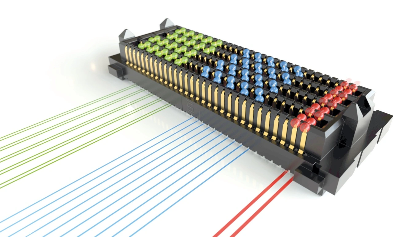 Eine weitere Option für die Übertragung hoher Ströme ist die Verwendung von Multifunktions-Steckverbindern. Ein gutes Beispiel dafür sind die neuen High-Density, Highspeed Signal/Power Arrays »AcceleRate mP« von Samtec, die digitale Signale und die Stromversorgung unterstützen. Die neue Lösung verfügt über gedrehte Messerleisten für eine erhöhte Stromabgabe und einen vereinfachten Breakout-Bereich (BOR).