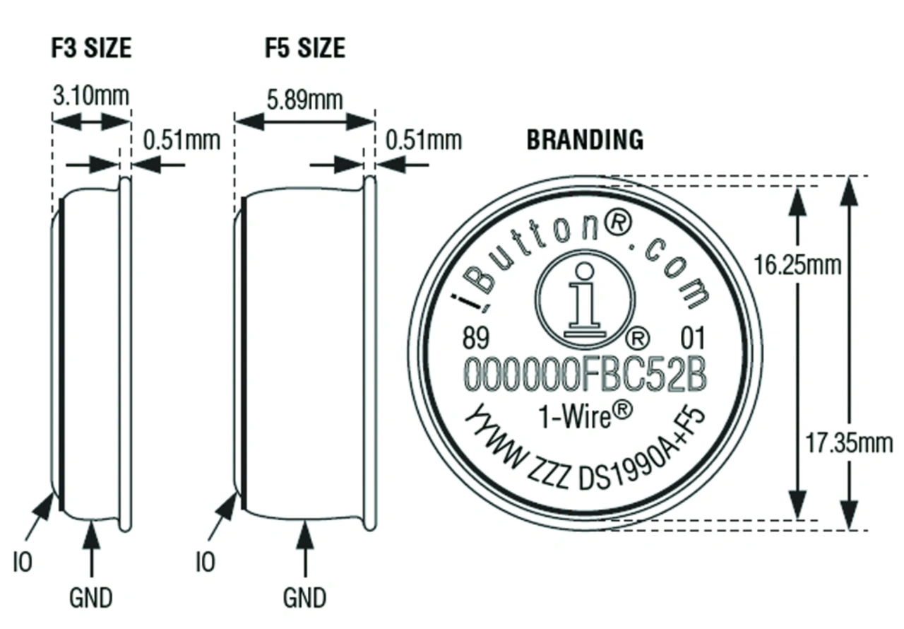 Eine spezielle Bauform von One-Wire-Chips bietet Maxim Integrated mit den sogenannten iButtons an. Sie sind insbesondere für Identifizierungs-, Kontroll- und Zugangsanwendungen gedacht. Zum Einsatz kommen sie beispielsweise in Druckerpatronen. Von der Funktion her unterscheiden sich konventionelle 1-Wire-Chips nicht von der der iButtons (Bild 3).