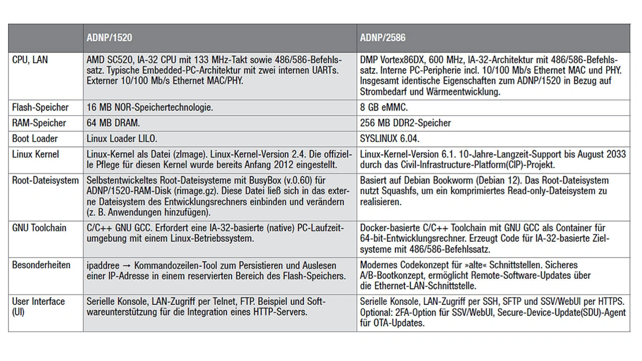 Auch wenn das Primärziel des ADNP/2586-Vorhabens die Sicherstellung der Produzierbarkeit für die nächsten fünf bis zehn Jahre war, kam während der Projektplanung neben den Hardwareaspekten doch sehr früh eine entscheidende Frage auf: Kann man in 2023 einen Embedded-Linux-Rechner als Retrofit neu entwickeln und mit einem über 20 Jahre alten Linux-Kernel und einem ebenso alten Root-Dateisystem ausstatten, um eine möglichst vollständig kompatible Laufzeitumgebung für den Anwendungscode zu schaffen – also idealerweise binärkompatibel? Hardware-technisch wäre das möglich (Bild 2).