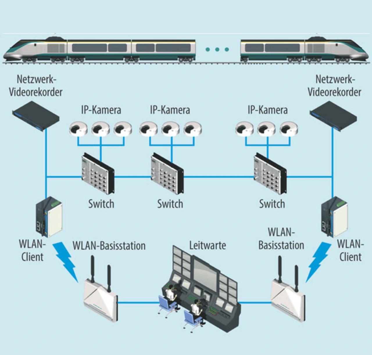 Um zum Zweck der Fahrgastsicherheit und der Unfallvermeidung die Zustände in den Waggons von Schienenfahrzeugen zu überwachen, kommt immer öfter die Videoüberwachung zum Einsatz. Ein solches Videoüberwachungssystem in die weiteren Zugsysteme, wie beispielsweise das Fahrgastinformationssystem oder die Lautsprecheranlage, einzubinden ist jedoch einfacher gesagt als getan. Zahlreiche Einschränkungen, so die rauen Umgebungsbedingungen, starke Vibration, begrenzter Platz für die Installation und eingeschränkte Verkabelungsmöglichkeiten erschweren die Integration.