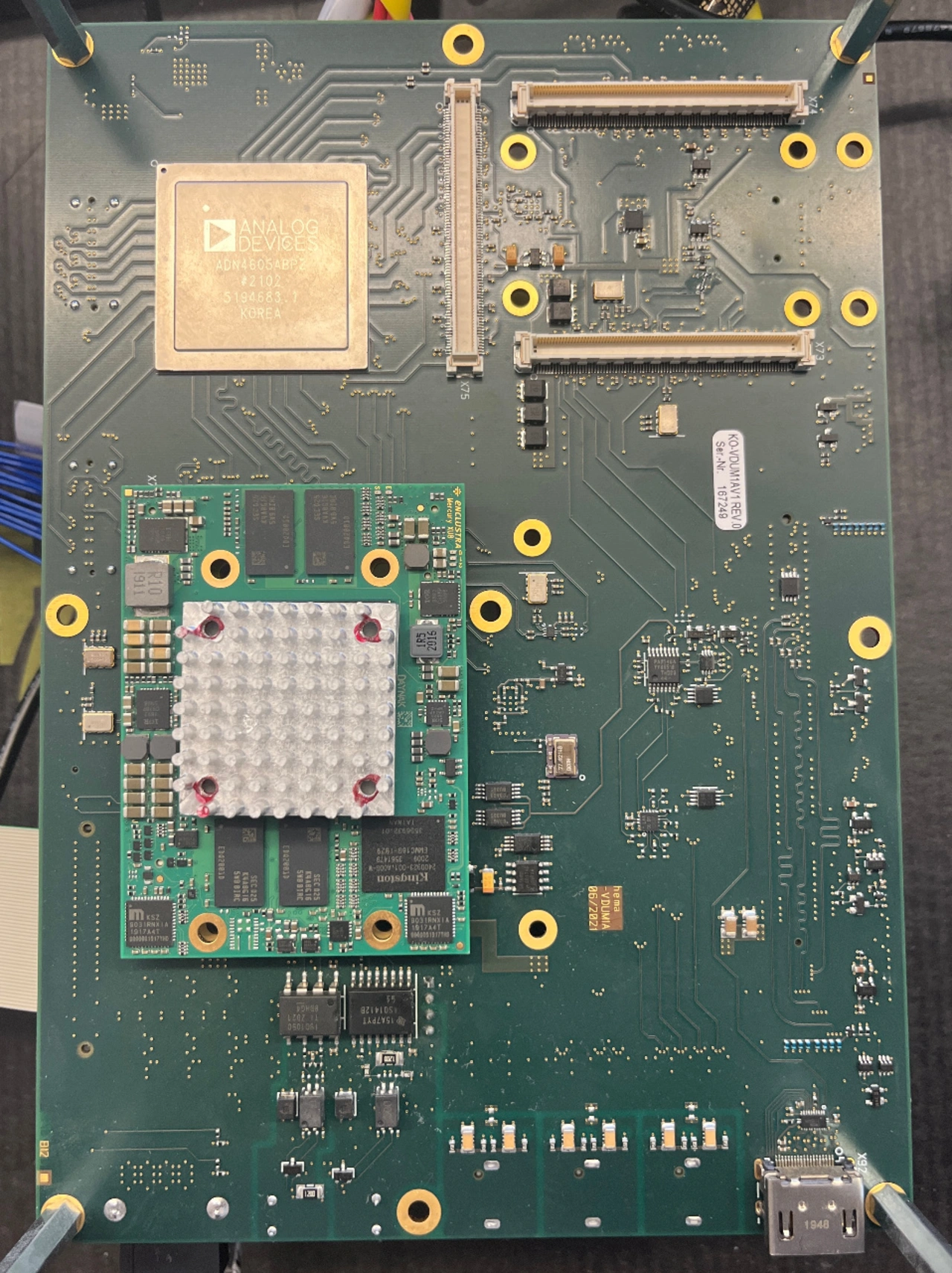 Die Herausforderung im Design der Elektronik bestand insbesondere in der Synchronisierung der SoMs sowie in der komplexen Verschaltung der insgesamt 40 Ein- und Ausgänge, die komplett frei per Software erfolgen sollte. Hierbei mussten Echtzeitanforderungen, geringe Latenz und verlustfreie Datenübertragungen berücksichtigt werden. Außerdem war für das Video-Handling eine geringe Interrupt-Last notwendig. Hierfür wurde eigens ein Cortex-R5-Rechenkern eines der Xilinx-SoMs abgestellt, um eine schnelle Reaktion auf Kommandos zu ermöglichen. Seine Rechenleistung ist dafür ausreichend, bei gleichzeitig niedriger Leistungsaufnahme. Als Betriebssystem setzte hema für die Anwendung auf FreeRTOS, das für Videohandling in Echtzeit prädestiniert ist. Die isolierte Prozessoreinheit kann gleichzeitig auch genutzt werden, um z.B. für sicherheitskritische Situationen verlässliche Bilddaten zu liefern.