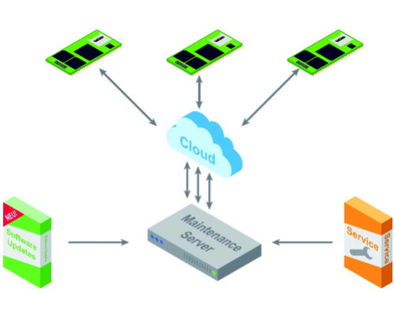 Des Weiteren sollten alle Systeme, die eine Netzwerkschnittstelle haben, auch eine zeitgemäße Vor-Ort-Software-Update-Möglichkeit besitzen. Besonders einfach ist ein Update wenn – wie bei einem Router – eine Internetverbindung besteht. In diesem Fall könnten die eingebetteten Mikrorechner von Zeit zu Zeit auf dem Maintenance-Server nach Updates schauen oder sich per Subscribe-Nachricht über ein anstehendes Update benachrichtigen lassen.