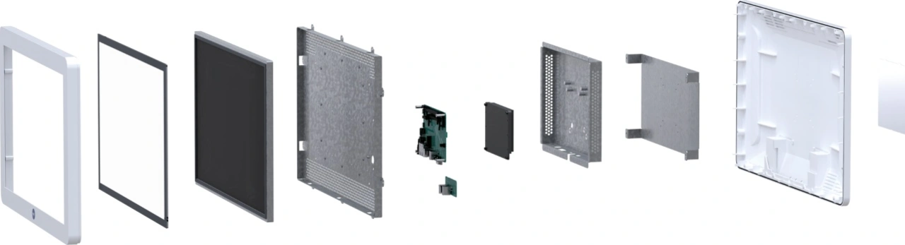 Wahlfreiheit ist bei der HMI-Gestaltung vor allem dort nötig, wo es um die Integration der Bedieneinheit in (oder an) das Gerät und das Erlebnis für die Endnutzer geht. Beim Display, der Montage- und Gehäuseart oder den Schnittstellen spielt das Synexis-Konzept daher seine Flexibilität aus. So stehen Displays von 5 Zoll bis 15,6 Zoll Durchmesser zur Auswahl; die Einbauoptionen reichen von der flächenbündigen Integration in das Produkt bis zur (wahlweise sogar outdoor-fähigen) Stand-alone-Lösung mit optionalen VESA-Befestigungspunkten. Die Elektronik ist ebenfalls modular: Der Aufbau aus Carrier Board, Extension Boards und Modulen ermöglicht das Anpassen der Rechnertechnik an die Leistungs- und Schnittstellenanforderungen. Bei allen Varianten beruht die Rechnereinheit auf performanten, energieeffizienten ARM-Prozessoren und befindet sich in einem Gehäuse, das eine gute elektromagnetische Verträglichkeit mit hoher Abschirmwirkung gegen Störungen und einer leistungsfähigen passiven Kühlung vereint.
