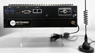 Die Mioty-Basisstation MYTHINGS Base Station (Bild 8) liefert Behr Tech auch mit seinem Entwicklungskit aus. Sie basiert, wie oben bereits erwähnt, auf einem Industrie-PC (ARK-2250L) von Advantech mit Intel-Core-i3-Prozessor und der Software MYTHINGS Central, die auf einem Ubuntu OS läuft. In der Basisstation ist ein Software-gesteuerter Funk-Transceiver (868 und 915 MHz) eingebaut. Komplettiert wird die Basisstation mit einer Dipol-Antenne (Rundstrahler) mit Magnetfuß und Filtern für die Einsatzregion. Die MYTHINGS Base Station kann Millionen von Nachrichten pro Tag verarbeiten und mehrere Tausend Knoten in einem Mioty-Netzwerk verwalten.