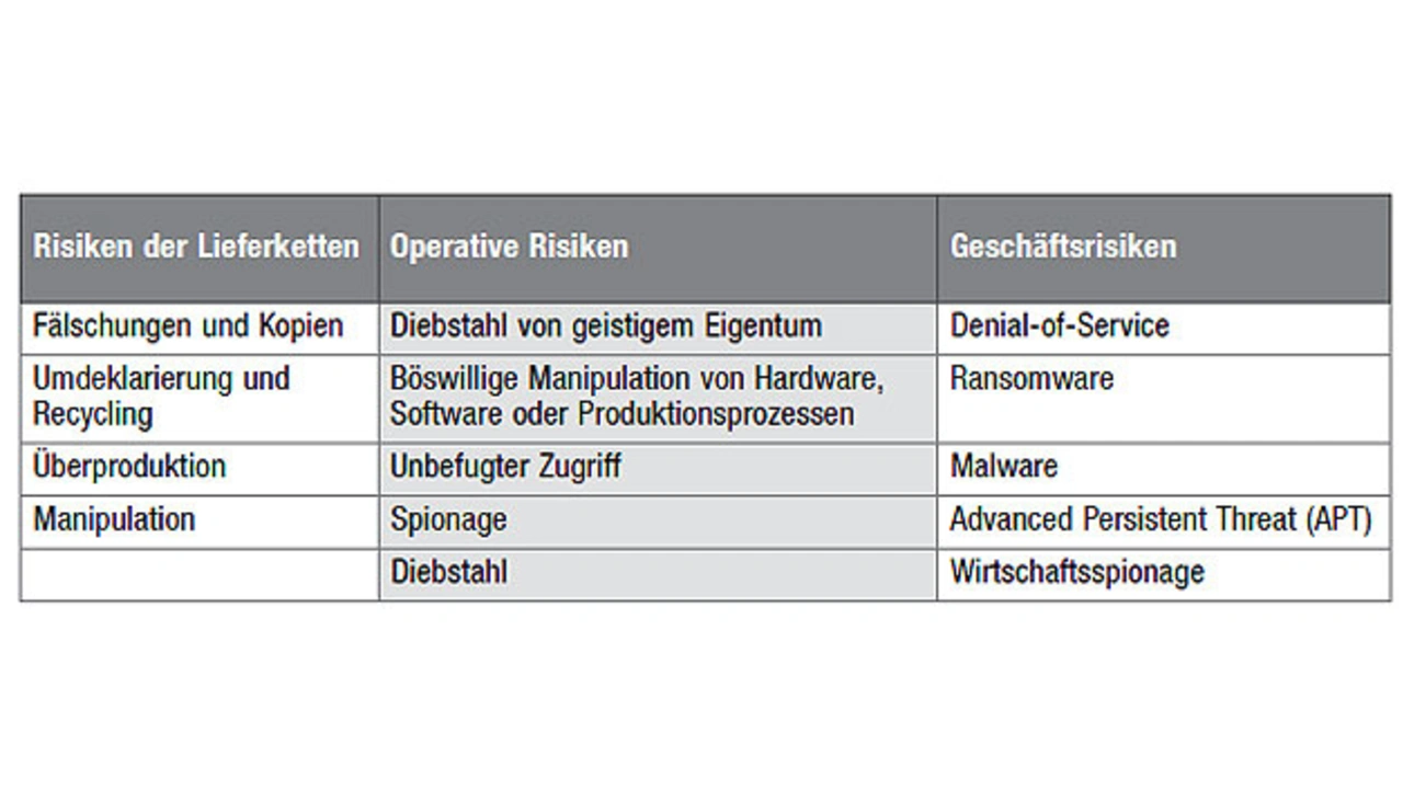 Auch die Integration von OT und IT ist nicht immer einfach. Beide haben unterschiedliche Lebenszyklen und Betriebsumgebungen. Laptops und Server in Büros tauschen IT-Mitarbeiter routinemäßig alle paar Jahre aus, Produktionsanlagen am Fließband jedoch nicht. Industrieanlagen sind meist sehr langlebig. Aus dem Grund ist ein Versäumnis, von Anfang an Sicherheit in die Geräte einzuplanen, am Ende kostspielig. Es stellt sich somit die Frage, welche Sicherheitsrisiken in Anlagen zu berücksichtigen sind (Tabelle 1).