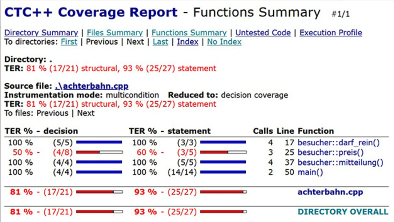 Code Coverage ist aus gutem Grund für die sicherheitskritische Softwareentwicklung vorgeschrieben. Aber auch für alle, die ihre Softwarequalität generell verbessern wollen, handelt es sich um eine gute Methode, um die Abdeckung und Aussagekraft der dynamischen Tests zu messen und zu erhöhen. Bei der Auswahl eines Code Coverage Analysers muss darauf geachtet werden, dass das Werkzeug den gestellten Anforderungen entspricht. Zudem spielen Faktoren wie einfache Benutzung und professionelle Unterstützung bei Rückfragen und im Supportfall eine wichtige Rolle. Richtig eingesetzt, hilft ein gutes Testabdeckungstool dabei, die Qualität deutlich zu verbessern, die Motivation von Entwicklern und Testern zu erhöhen und Tests kostensparend durchzuführen.
