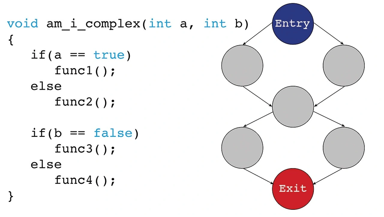 Daher ist das Minimieren der Komplexität in der Gesamtarchitektur ein wichtiger Faktor, der berücksichtigt werden muss – aber in diesem Bemühen muss auch der eigentliche Anwendungscode selbst minimiert und reduziert werden. Dieses Konzept wurde bereits 1976 von Thomas McCabe konzipiert, der das Konzept der zyklomatischen Komplexität als eine Softwaremetrik definierte, welche die Komplexität eines Programms oder Codeabschnitts angibt [1]. Sie ist definiert als die Anzahl linear unabhängiger Ausführungsmöglichkeiten innerhalb einer Funktion oder eines Codeblocks