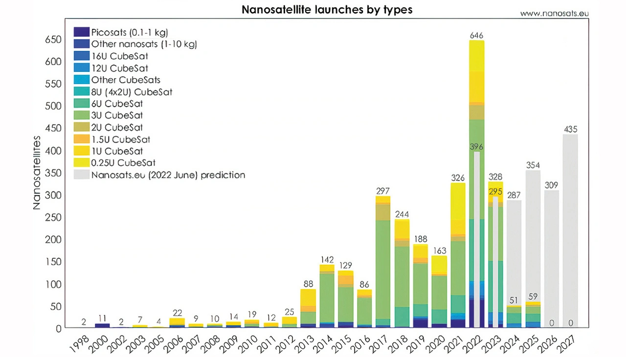 Im Gegensatz zu den Anfangsjahren der Satellitenkommunikation ist es heute kostengünstiger und einfacher, einen Satelliten zu entwickeln und ihn in eine Erdumlaufbahn zu bringen. Schulen, Hochschulen und Universitäten können sich an der Entwicklung eines CubeSat beteiligen und die von der NASA und anderen aufstrebenden kommerziellen Raumfahrtunternehmen angebotenen Trägerdienste nutzen. Das europäische Satellitenentwicklungsunternehmen Alen Space hat in Zusammenarbeit mit führenden Raumfahrtinstitutionen eine Kategorisierung von Kleinsatelliten vorgenommen, um deren schnell wachsende Nutzung besser zu definieren. Ein CubeSat mit den Maßen 10 × 10 × 10 cm3 und einem Gewicht von höchstens 1,3 kg setzt den Maßstab für 1U-Nanosatelliten [1].