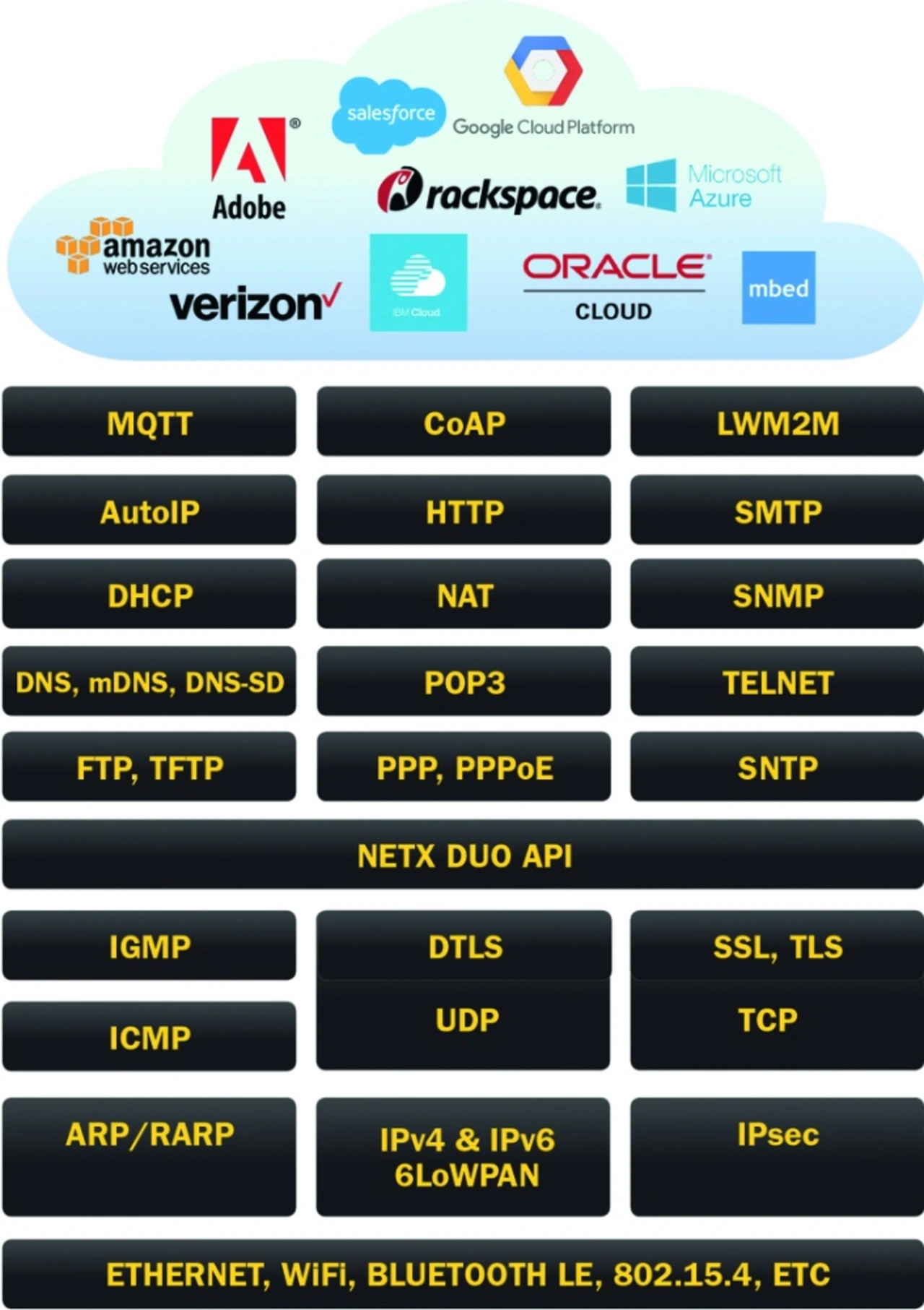 Jedes der soeben beschriebenen Protokolle stützt sich für die IPv6-Kommunikation auf einen zugrunde liegenden IP-Stack. Die neuen Protokolle sind (mit Ausnahme von 6LoWPAN) auf der Applikationsebene konzipiert, ohne den eigentlichen Transportweg (Ethernet, Wi-Fi oder Mobilfunk) zu berücksichtigen. Somit wird ein großer Teil der eigentlichen Arbeit an den IP-Stack delegiert, der, wie sich herausstellt, deutlich umfangreicher ist als die eigentlichen Cloud-Protokolle.