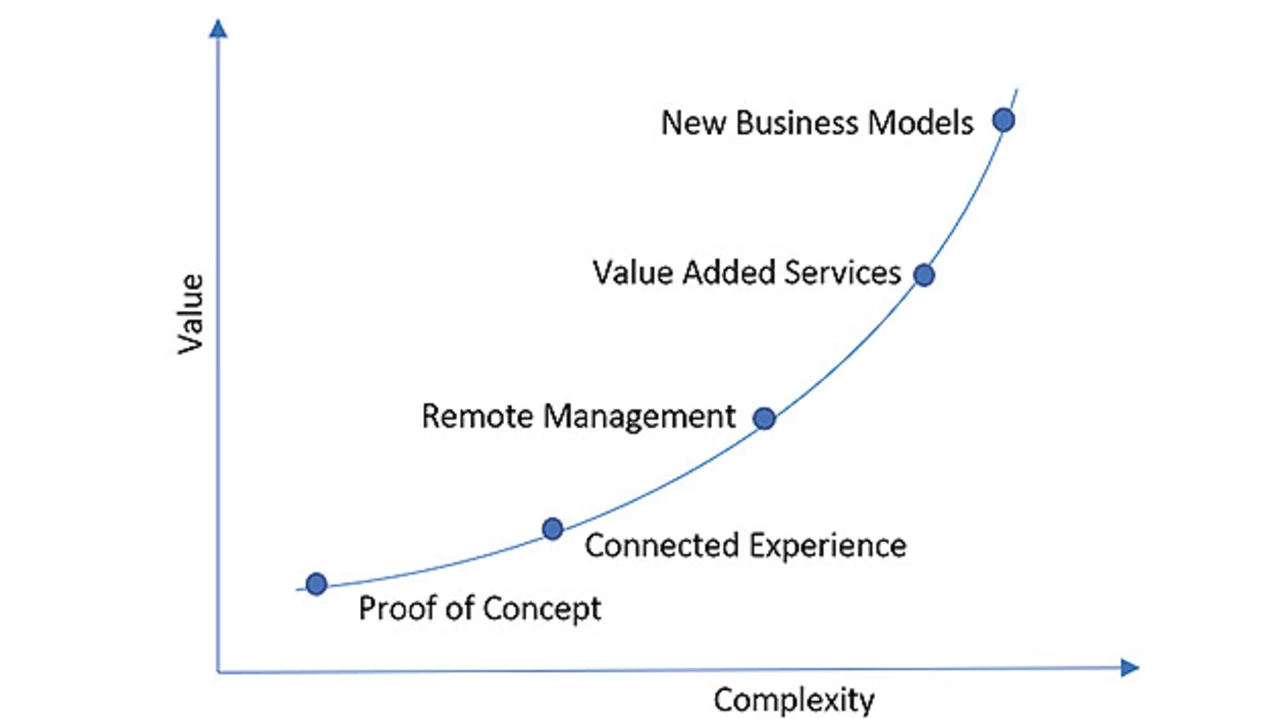 Anschließend können Funktionen zur Fernverwaltung und -wartung des Geräts hinzugefügt werden. Wenn aus den gesammelten Daten weitere Erkenntnisse gewonnen werden, kann der Gerätehersteller zusätzliche Mehrwertdienste anbieten, darunter Energiemanagement, vorausschauende Wartung usw. Schließlich können die Gerätehersteller neue Geschäftsmodelle rund um ihre Geräte einführen, bei denen sie sich auf den Verkauf von Ergebnissen konzentrieren, anstatt Geräte zu verkaufen.