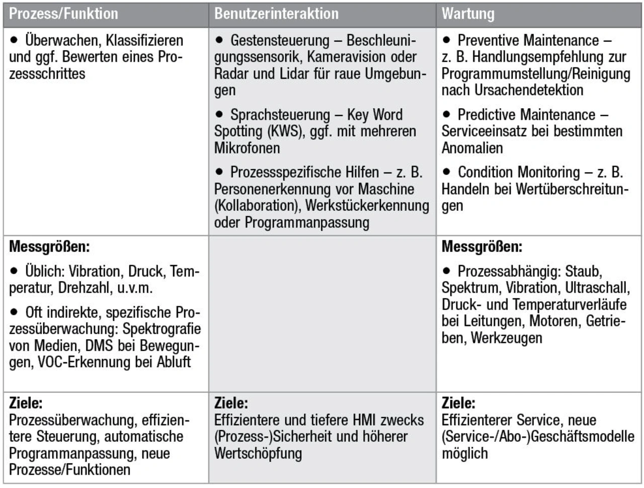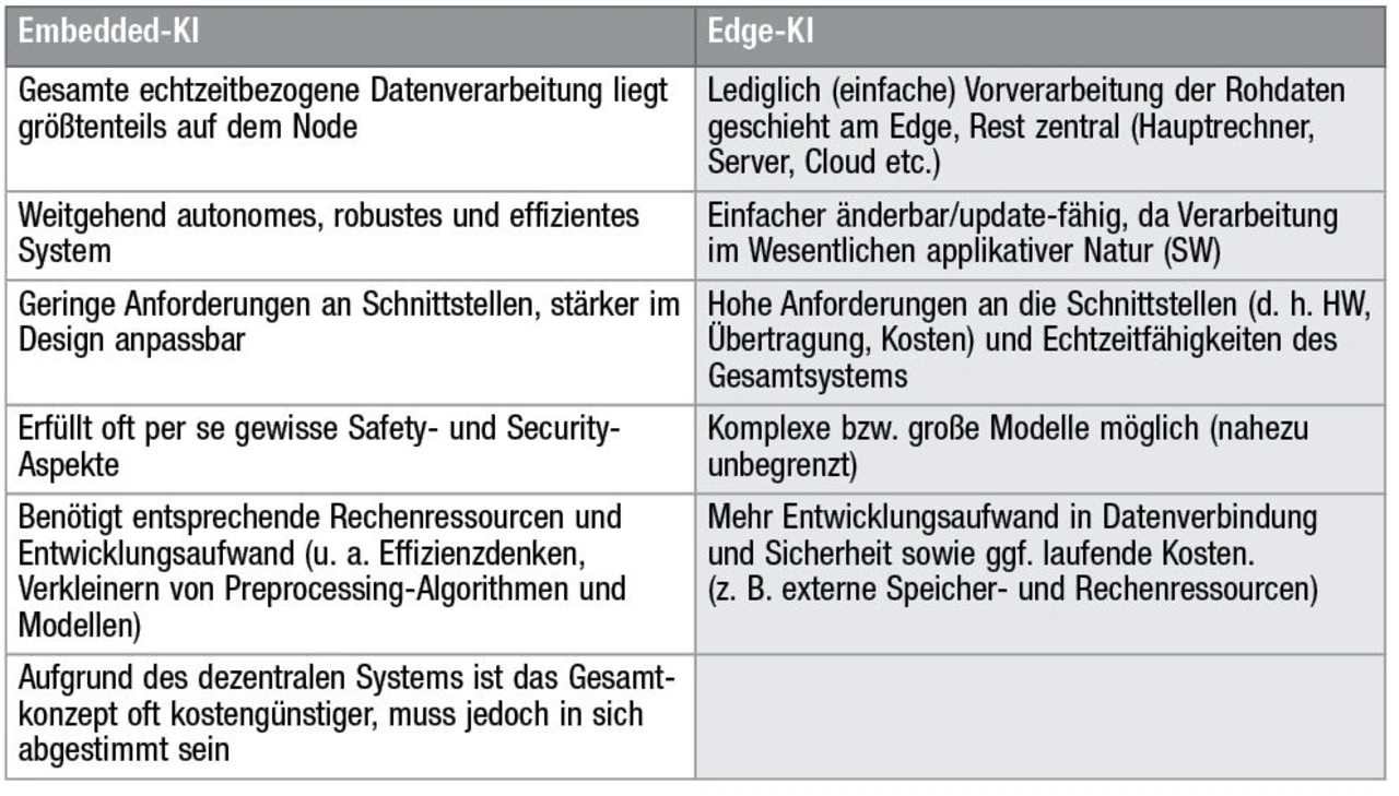Embedded-KI lässt sich in der Praxis in drei wesentliche Einsatzgruppen (Tabelle 2) aufteilen: