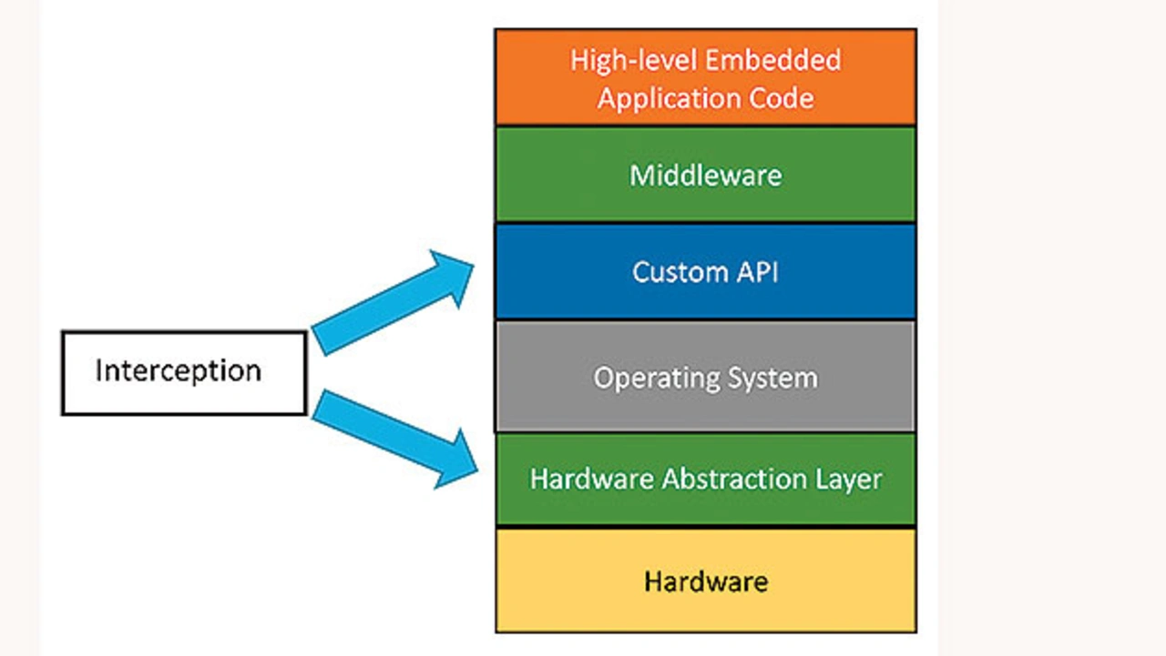 Zunächst ist sicherzustellen, dass die Software eine Hardwareabstraktion nutzt (HAL, Bild 2). Wenn direkt auf Hardwareregister zugegriffen wird, wie bei älterer Microcontroller-Software üblich, ist sie soweit anzupassen, dass lediglich ein einziger Funktionsaufruf den Zugriff ausführt und somit abfängt (engl. Intercept). Das bedeutet, dass der Funktionsaufruf über eine Schnittstelle, die der realen Hardware gleicht, von einem Treiber empfangen wird. Zudem sind alle in Assembler-Sprache entwickelten Programmteile zu deaktivieren oder umzuschreiben, da sie üblicherweise auf der Host-Plattform nicht verfügbar sind.
