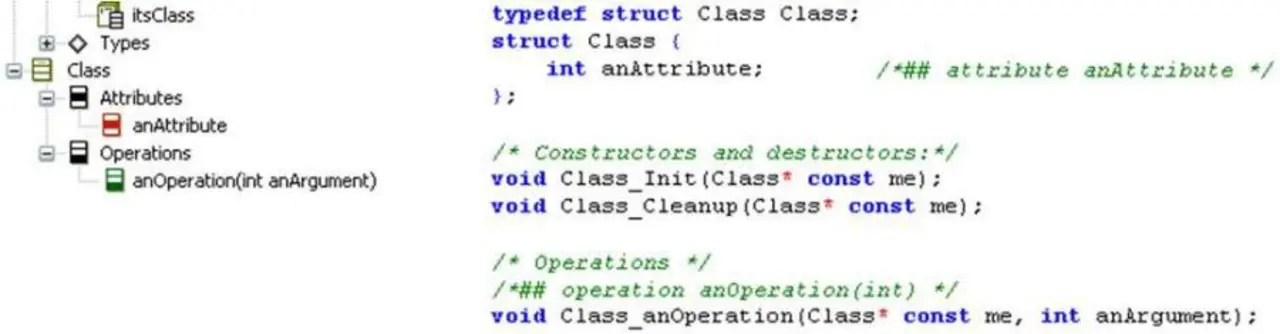Klassen sind in Sprachen wie C++ oder Java bereits vorhanden. In C werden diese als Strukturen abgebildet. Die Attribute einer Klasse bilden die Attribute der Struktur (Bild 5). Eine Instanz der Struktur wird an die Funktionen übergeben. Diese entspricht dem this-Pointer aus C++.
