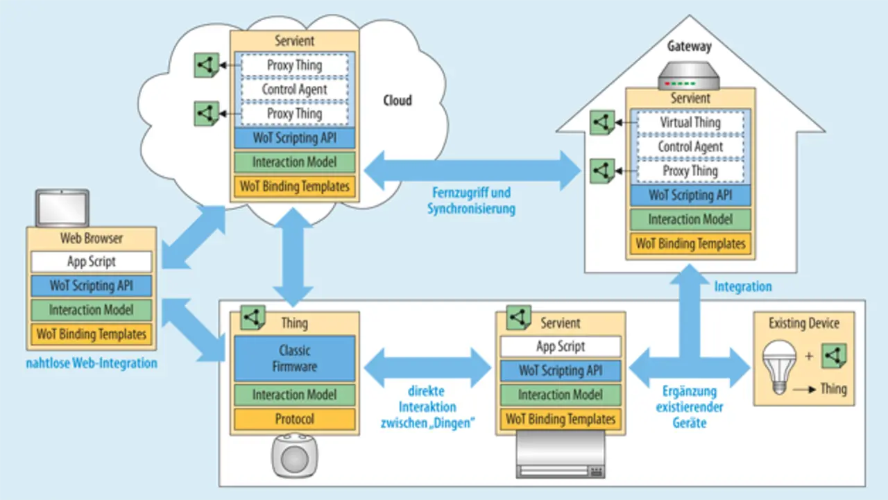 Für die Interaktion mit einem Thing können Entwickler das bekannte REST-Webprotokoll zum Lesen (GET) oder Schreiben (PUT oder POST) von in der Thing Description definierten Thing-Eigenschaften nutzen. Die reguläre REST-Antwort liefert ihrerseits die mit einem Lesebefehl angeforderten Daten oder den Status des Schreibvorgangs.