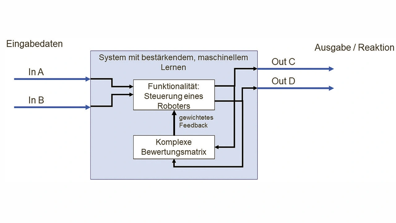 Als Voraussetzung dafür, dass Ma- schinen komplexe, eigenständige Entscheidungen treffen können, wird vermutlich das bestärkende maschinelle Lernen eher ein Lösungsansatz sein. Beim bestärkenden maschinellen Lernen werden die Ergebnisse eines Algorithmus über eine in der Praxis komplexe Bewertungsmatrix zurückgemeldet.