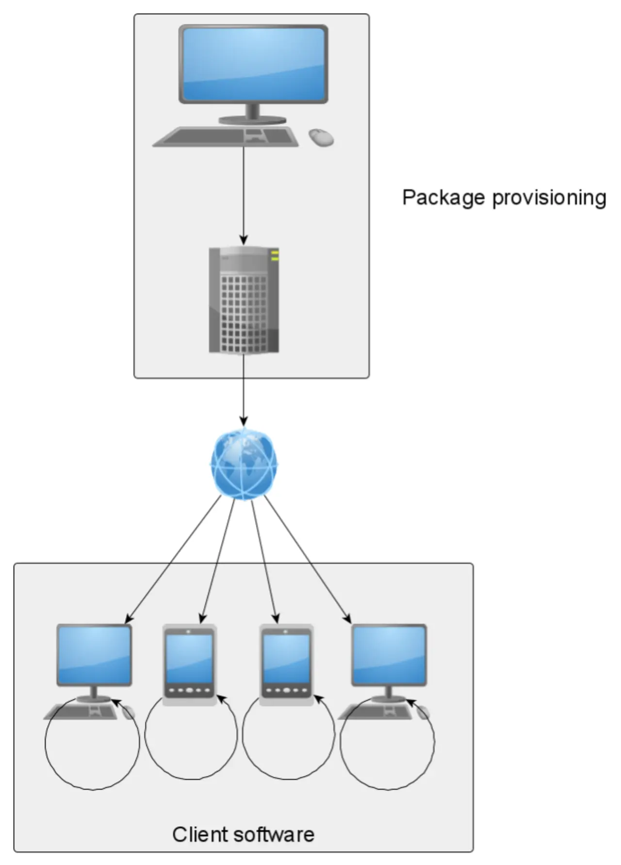 Auf Software- oder Binary-Ebene gibt es weitere Schwierigkeiten zu lösen. Zum einen sind Deployments von falschen Binaries zu verhindern, beispielsweise an falsche Speicheradressen oder in den falschen Speicher. Hierfür gibt es Unified-Modelling-Language(UML)-basierte Deployment-Diagramme, die dokumentieren, welche binären Artefakte für welche Speicherbereiche bestimmt sind. Zum anderen ändern sich im Laufe des Entwickelns die Binaries, die zu updaten sind. Sind es zu Beginn des Entwickelns die tieferliegenden Anteile wie Kernel oder First Stage Bootloader, ist es später bevorzugt die Applikation selbst, die im Zuge des fortschreitenden Entwickelns zu deployen und testen ist. Geschickte Systempartitionierung sowie das Verwenden eines Root File System neben einem Application File System reduzieren den Umfang der jeweils abzulegenden Firmware-Daten. Diese können je nach System bei vollem Umfang mehrere GB umfassen. Weiterhin sind alle möglichen Fehlerszenarien bei einem Deployment zu berücksichtigen. Um lediglich zwei zu nennen: Fehler während des Deployments, beispielsweise aufgrund Netz- oder Stromausfall, oder ein inkonsistentes System nach einem Deployment aufgrund fehlerhafter Firmware. Für Fehler dieser Art müssen Entwickler Recovery- beziehungsweise bootbare Rescue-Systeme oder sonstige Fallback-Szenarien vorhalten.