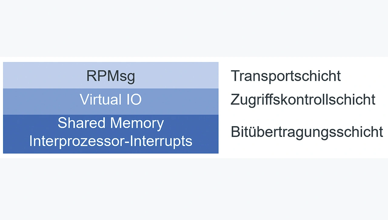 Die unterste Schicht der Interprozessorkommunikation mit RPMsg besteht aus dem erwähnten Shared Memory. Zusätzlich umfasst diese Schicht Interprozessor-Interrupts. Sie werden genutzt, um von einem Prozessor aus den Kommunikationspartner zu benachrichtigen, dass neue Daten im Shared Memory bereitliegen.