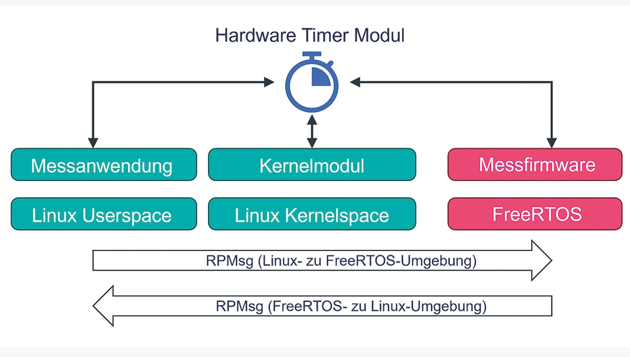 An der Kommunikation zwischen einer Anwendung aus dem Linux-Userspace und der Firmware eines Coprozessors sind verschiedene Schichten und Treiber beteiligt. Zwar sind im Linux-Kernel bereits verschiedene Möglichkeiten zur Messung von Latenzen integriert, doch keine davon kann eine Prozessor- oder gar umgebungsübergreifende Messung durchführen. Für die Analyse der RPMsg-Latenzen ist also ein spezielles Messsystem notwendig.