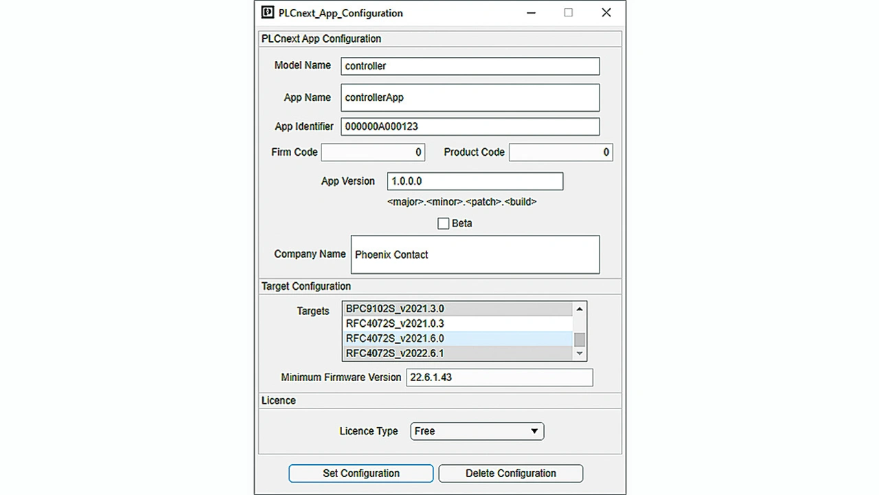 Die intuitive Erzeugung verschiedener Applikationstypen für den PLCnext Store wird durch die praktische Funktion abgerundet, mit der ein Simulink-Modell gleichzeitig für mehrere Steuerungstypen und/oder Firmware-Versionen gebaut werden kann, um das Modell schließlich als eine einzige PLCnext App oder Bibliothek zur Verfügung zu stellen. Das minimiert potenzielle Fehlerquellen bei der Arbeit mit unterschiedlichen PLCnext-Steuerungen und vereinfacht den Entwicklungsprozess.