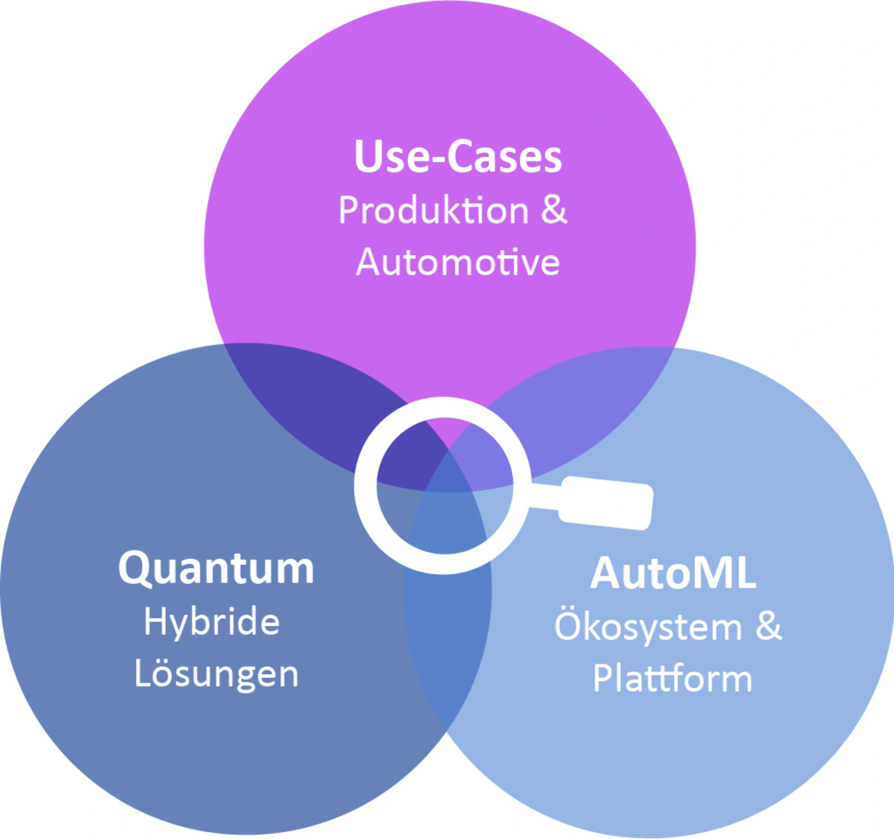 Das Verbundprojekt »AutoQML« setzt an dieser Innovation an und verfolgt zwei wesent-liche Ziele: Zum einen wird der neue Ansatz AutoQML entwickelt. Dieser wird um neu entwickelte Quanten-ML-Algorithmen erweitert. Zum anderen hebt Quantencomputing den AutoML-Ansatz auf ein neues Niveau, denn bestimmte Probleme lassen sich mithilfe von Quantencomputing schneller lösen als mit konventionellen Algorithmen.