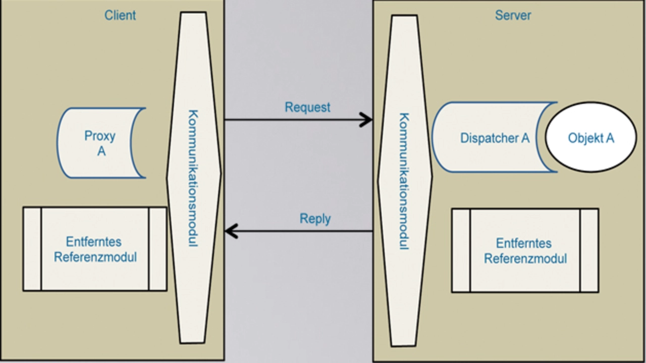 Es gibt eine Vielzahl von RPC-Bibliotheken für verschiedene Sprachen. Ein Beispiel ist »Java Remote Method Invocation« (RMI). Java RMI ist speziell auf das Java-Umfeld abgestimmt und erlaubt es dem Entwickler, Objekte (in Bild 1 mit »Objekt A« dargestellt) für einen Zugriff von außen bereitzustellen. Der Aufrufer kann sich Informationen über das Objekt A holen und die zur Verfügung gestellte Funktion aufrufen. Dabei wird im Programm des Aufrufers ein »Proxy A« erzeugt. Er bildet die Funktionsdeklaration ab, verpackt bei einem Aufruf die Daten (Marshalling) und versendet sie zum Server. Dort entpackt der »Dispatcher A« die Nachricht und interpretiert sie. Daraufhin wird die angeforderte Funktion aufgerufen und das Ergebnis zum Client zurückgeschickt (Bild 1).