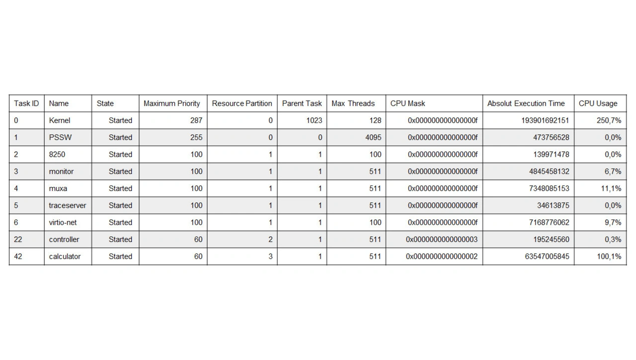Durch den Start eines individuellen GUI für solche OS-Partitionen können Softwareentwickler auch beide PikeOS-Varianten gleichzeitig debuggen – inklusive synchronisierter Start-and-Stop-Events. Dies ist besonders bei der Suche nach Fehlern in der Kommunikation zwischen den einzelnen Subsystemen nützlich. Darüber hinaus kann TRACE32 das gesamte System tracen und grafische Diagramme der Anwendungs- und Funktionslaufzeiten anzeigen. Das Timing ist synchronisiert, was die Beobachtung des Timing-Verhaltens von sowohl klassischem PikeOS als auch PikeOS for MPU und die Messung von Latenzen zwischen beiden Systemen ermöglicht und so das Ausbalancieren der Leistung erleichtert.