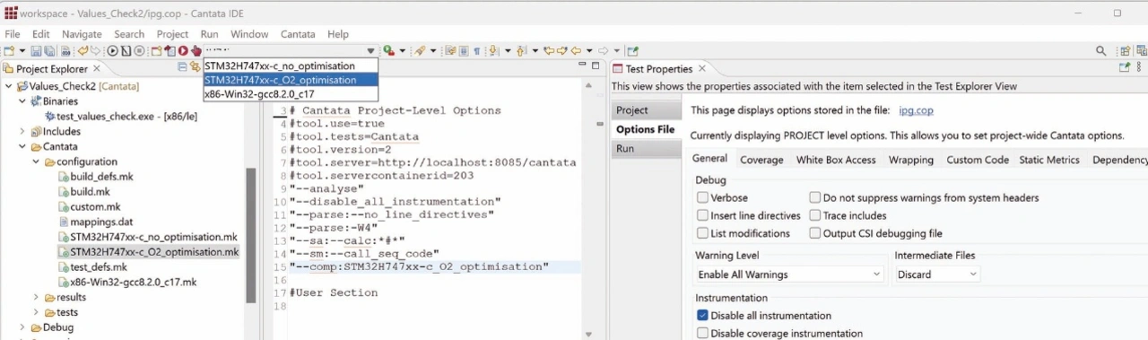 Abhilfe gegen das Durchrutschen von solchen Fehlern ist zum Beispiel eine strikte (und auf Einhaltung geprüfte) Verfahrensanweisung: es gibt keine separaten Übersetzungen für den Unit-Test; es wird stattdessen das Object File der zu testenden Datei aus dem Produktions-Build genommen. Eine alternative Möglichkeit ist zwar separat im Testwerkzeug zu übersetzen, aber die Compiler-Schalter automatisiert aus der Produktion zu übernehmen. Das gelingt dann gut, wenn das Unit-Test-Werkzeug nicht nur über die grafische Benutzerschnittstelle (Bild 2), sondern auch über Skripts gesteuert werden kann.