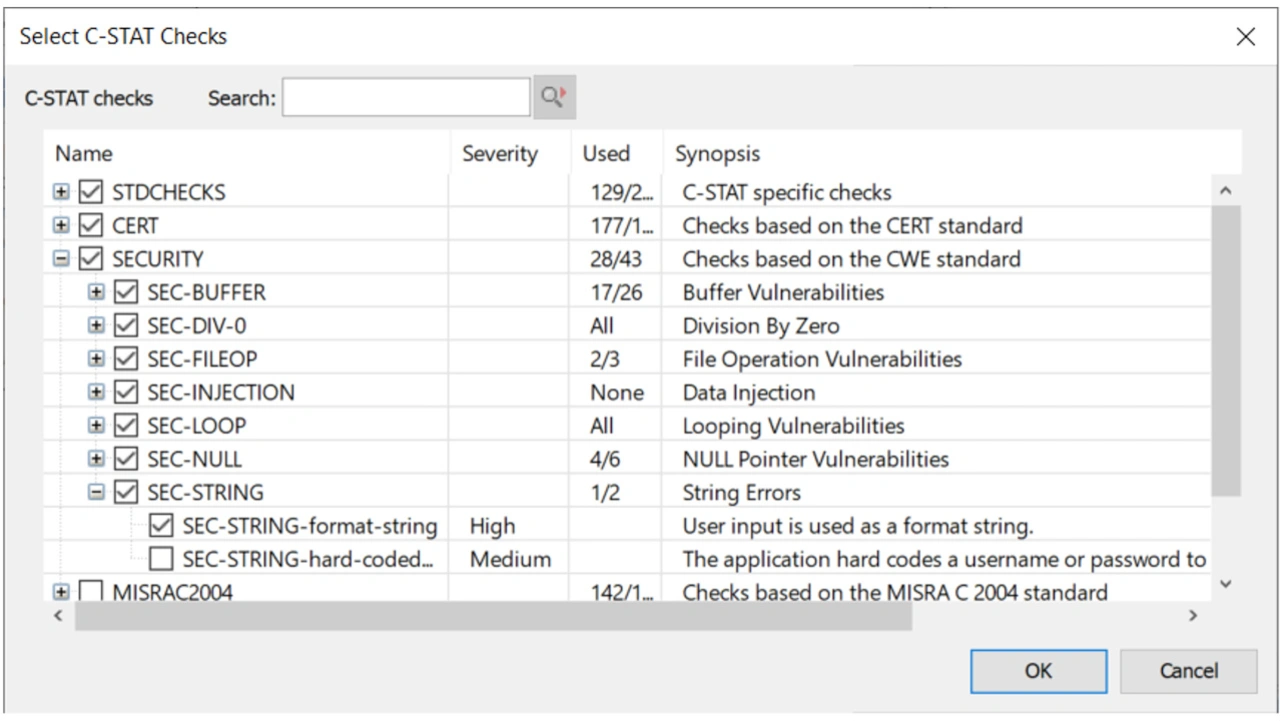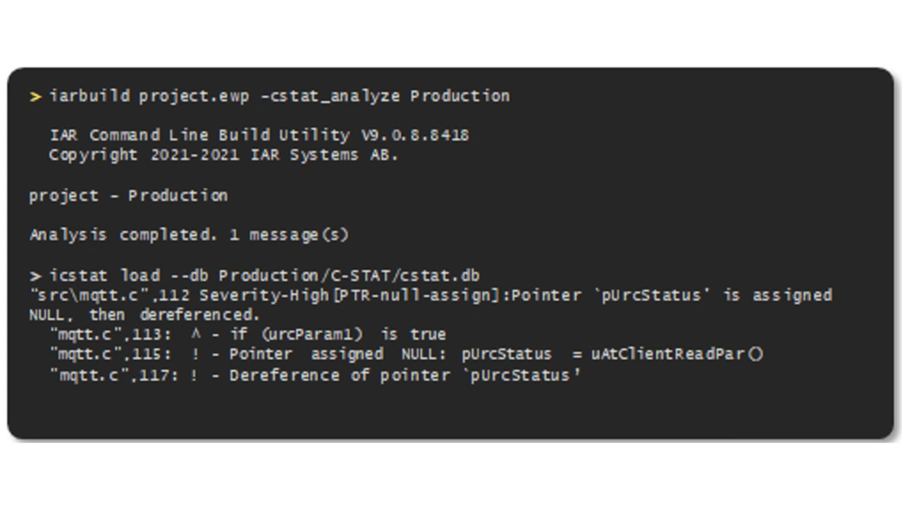 Abhängig von der Qualität der statischen Analyse kann das Tool viele andere potenzielle Probleme aufdecken, während der Code noch am Schreibtisch geprüft wird. Um zu sehen, wie es funktioniert, sehen wir uns das C-STAT Static Analysis Tool von IAR in Aktion an, das in IAR Embedded Workbench und IAR Build Tools für RISC-V integriert ist. C-STAT bezieht seine Regeln aus den MISRA C- und MISRA C++-Regelsätzen, der Common Weakness Enumeration (CWE) von MITRE und aus SEI CERT C.