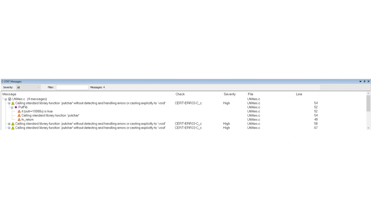 Bild 8 zeigt die Verwendung des statischen Analysetools C-STAT, das über die Kommandozeile in Linux-Ubuntu verwendet wird. Für viele automatisierte Arbeitsabläufe ist die plattformübergreifende Unterstützung ein Standard zur Verbesserung der Effizienz von Entwicklungsteams.