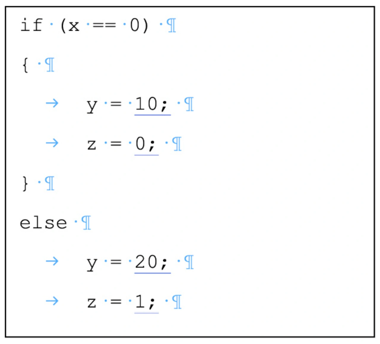 Es ist schwer zu erkennen, ob die Anweisung z=1 Teil des else-Blocks sein soll. Das liegt daran, dass sie genauso eingerückt ist wie die vorherige Anweisung. Sollte es beabsichtigt sein, handelt es sich um einen Fehler, da die Anweisung, so wie sie geschrieben ist, eindeutig nicht in den Codeblock gehört. Mit der Regel wird diese Art von Programmierfehlern vermieden. Und das ist nur ein kleiner Auszug aus den über 200 Regeln, die MISRA C zur Verfügung stellt, um den Code zuverlässiger und portabler zu machen und so die Software-Entwicklung zukunftssicher zu gestalten.