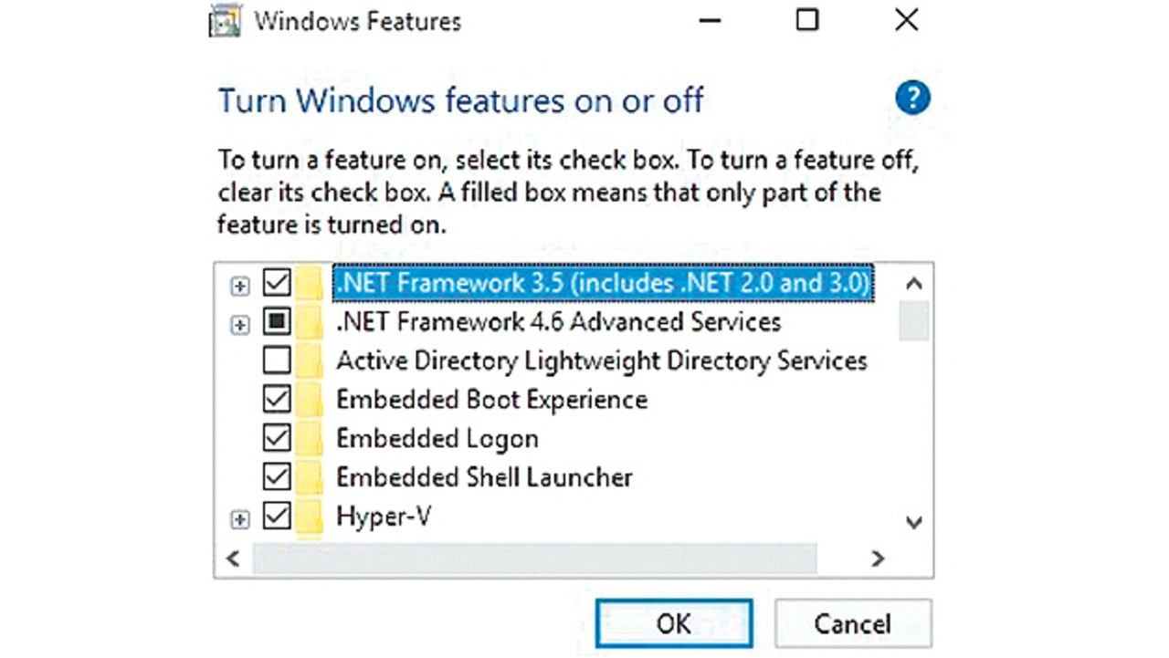 Die OPKs sind bootfähige DVDs oder USB-Sticks. Damit kann das Embedded-System direkt gebootet werden, um die Windows-10-IoT-Enterprise-Version zu installieren. Die Installation läuft genauso wie bei einer Desktop-Installation von Windows 10 ab. Während der Installation sind dann verschiedene Einstellungen und Konfigurationen notwendig. Zu den Eingaben gehören: auf welche Partition soll die Konfiguration installiert werden, User/Password, der Lizenz-Key usw. Nach dem Booten des Systems und Einloggen können die Embedded Features hinzugefügt werden. In der Systemsteuerung werden dazu „Programme und Features“ aufgerufen und hier wiederum „Windows Features aktivieren/deaktivieren“. Im Dialog (Bild 2) können die Embedded Features ausgewählt werden. Nach einem Neustart werden sie hinzugefügt und sind aktiv. Nun kann das Image auf die Bedürfnisse des Kunden angepasst werden.