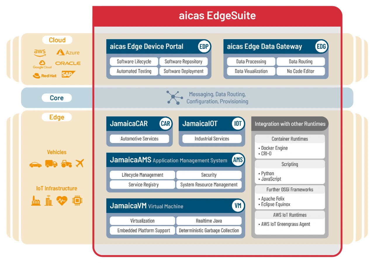aicas bietet mit dem Zusammenspiel aus Edge Device Portal, JamaicaAMS und Edge Data Gateway eine komplette Struktur dafür an. Unsere Architektur ist bereits in gemeinsamen Projekten mit AWS und Swissbit zur Anwendung gebracht worden – unter anderem für Condition-Based OTA-Kampagnen in sicherheitskritischen Anwendungen.