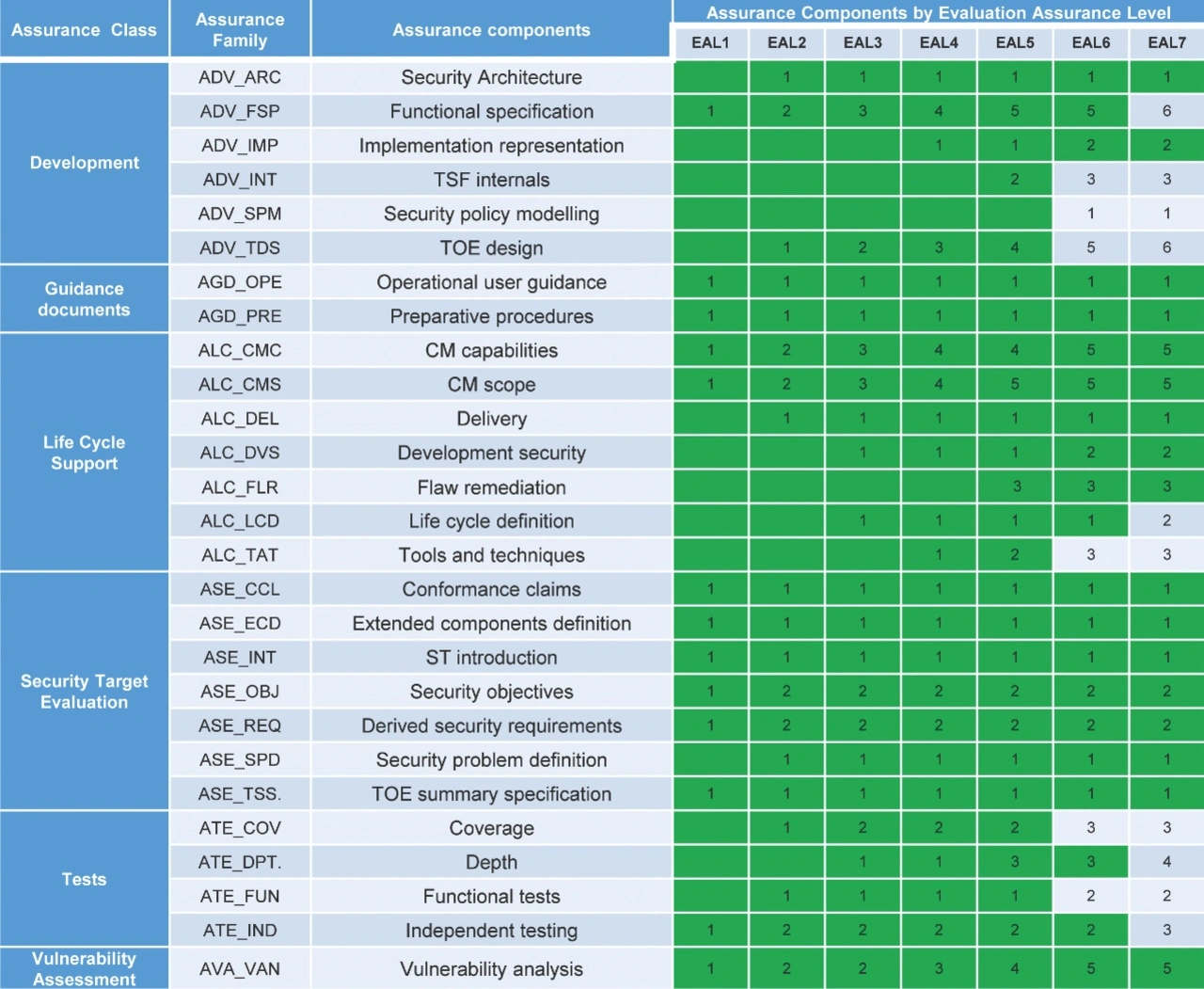 Erlauben Sie mir dazu einen kurzen Exkurs: Um Produkte nach Common Criteria zu zertifizieren, werden Anforderungen in zusammenhängenden Klassen gebündelt, und für jede dieser Klassen gibt es spezifische Anforderungen, um eine Stufe von EAL1 bis 7 zu erreichen (Anmerkung der Redaktion: siehe Kasten »Common Criteria«). Das Pluszeichen zeigt nun an, dass einige Klassen der Common Criteria optional für eine höhere Stufe zertifiziert werden (Bild).