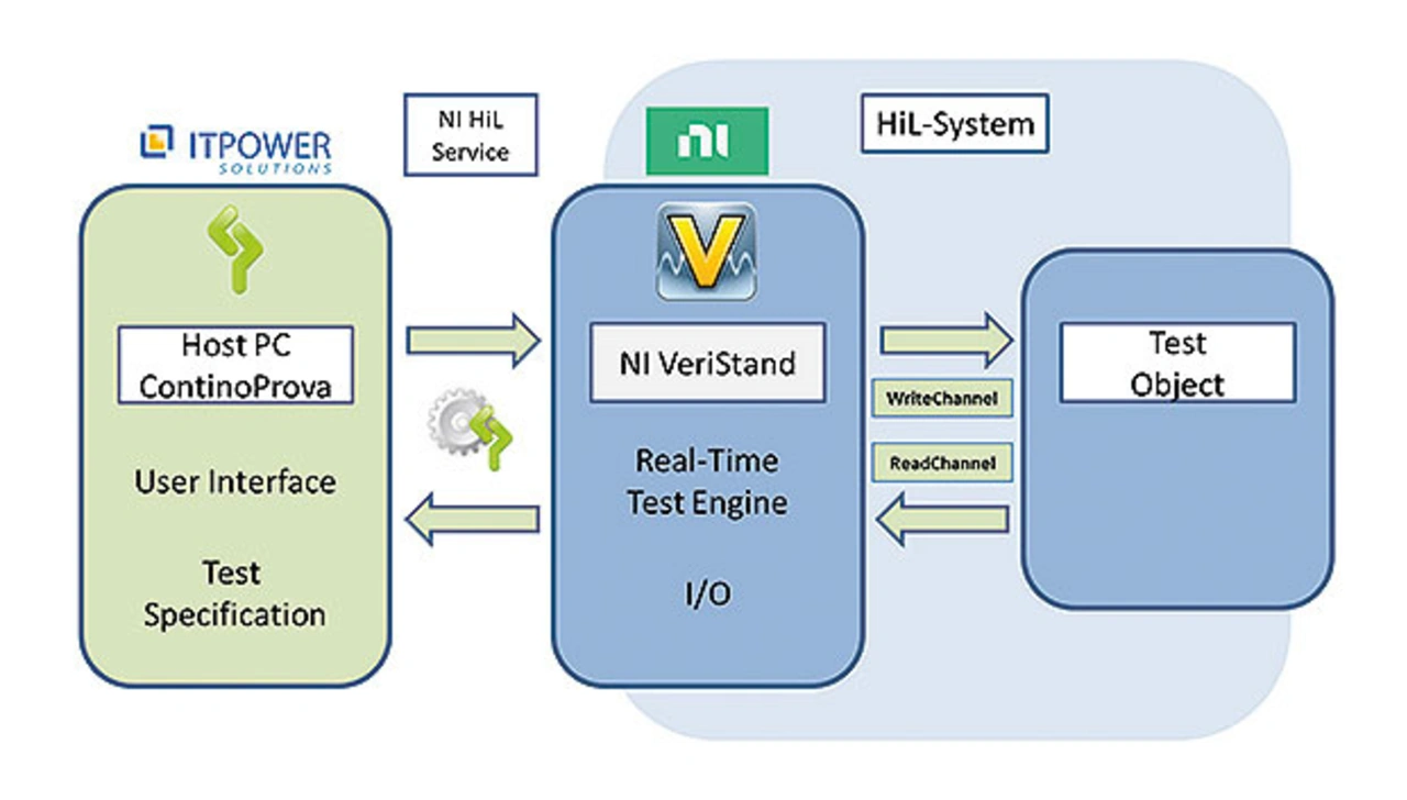 In VeriStand können Testspezifikationen mithilfe von Programmier- und Skriptsprachen erstellt werden. Dies setzt beim Nutzer jedoch gewisse Programmierkenntnisse voraus und ist dazu relativ zeitaufwendig. Um eine einfache Möglichkeit zur Spezifikation von Testfällen für die automatisierte Durchführung in einer Hardware-in-the-Loop-Umgebung bereitzustellen, bietet es sich an, spezialisierte Tools in die Testumgebung zu integrieren. Dafür sind verschiedene Tools unterschiedlicher Hersteller auf dem Markt verfügbar. Auch Eigenentwicklungen können diese Funktion übernehmen. ITPower Solutions hat dafür das hauseigene Testtool ContinoProva über eine Anbindung an NI VeriStand für den Einsatz in einer HiL-Umgebung optimiert.