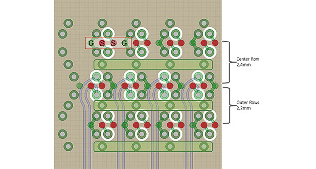 Die technischen Experten im Bereich Signalintegrität von Samtec haben die Layouttechniken in vielen High-Speed-Anwendungen verfeinert. Die Signaldichte wird durch die Verwendung des Ground-Signal-Signal-Ground-Routings (GSSG) beibehalten. Dieser Ansatz verringert die Anzahl der Bahnkurven und extremen Umwege, was das Routing erleichtert und die Entwicklungszeit der Leiterplatte verkürzt. All dies trägt wiederum zur Optimierung der Signalintegrität bei PCIe-5.0- und 100-GbE-Datenraten bei.