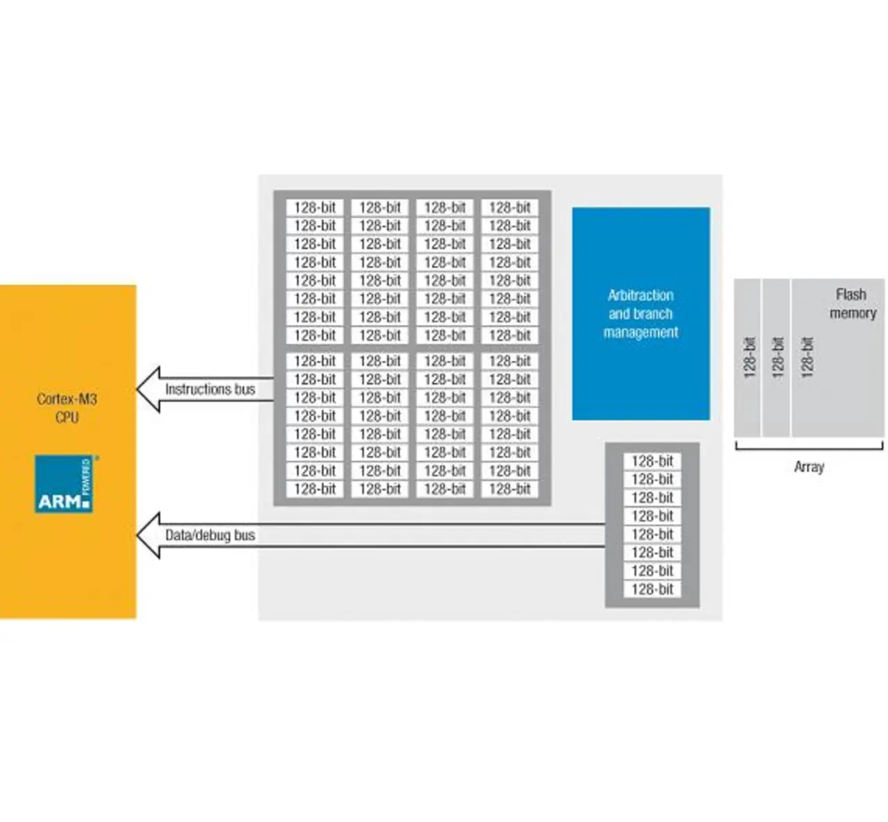 Um Energie und Kosten zu sparen und ein günstiges EMC-Verhalten zu erzielen, bietet sich bei MCUs generell der Einsatz von langsamen Flash_Speicher an. Das Problem besteht dann darin, dass bei schnellen Core-Frequenzen Wait-States generiert werden, weil der Code nicht schnell genug gelesen werden kann. ST Microelectronics hat dafür einen Adaptive-Real-Time-Memory-Accelerator (ART) entwickelt (Bild), der es ermöglicht, einen nur mit 30 MHz betriebenen Flash-Speicher einzusetzen und trotzdem Null Wait-States zu ermöglichen. Wie geht das?