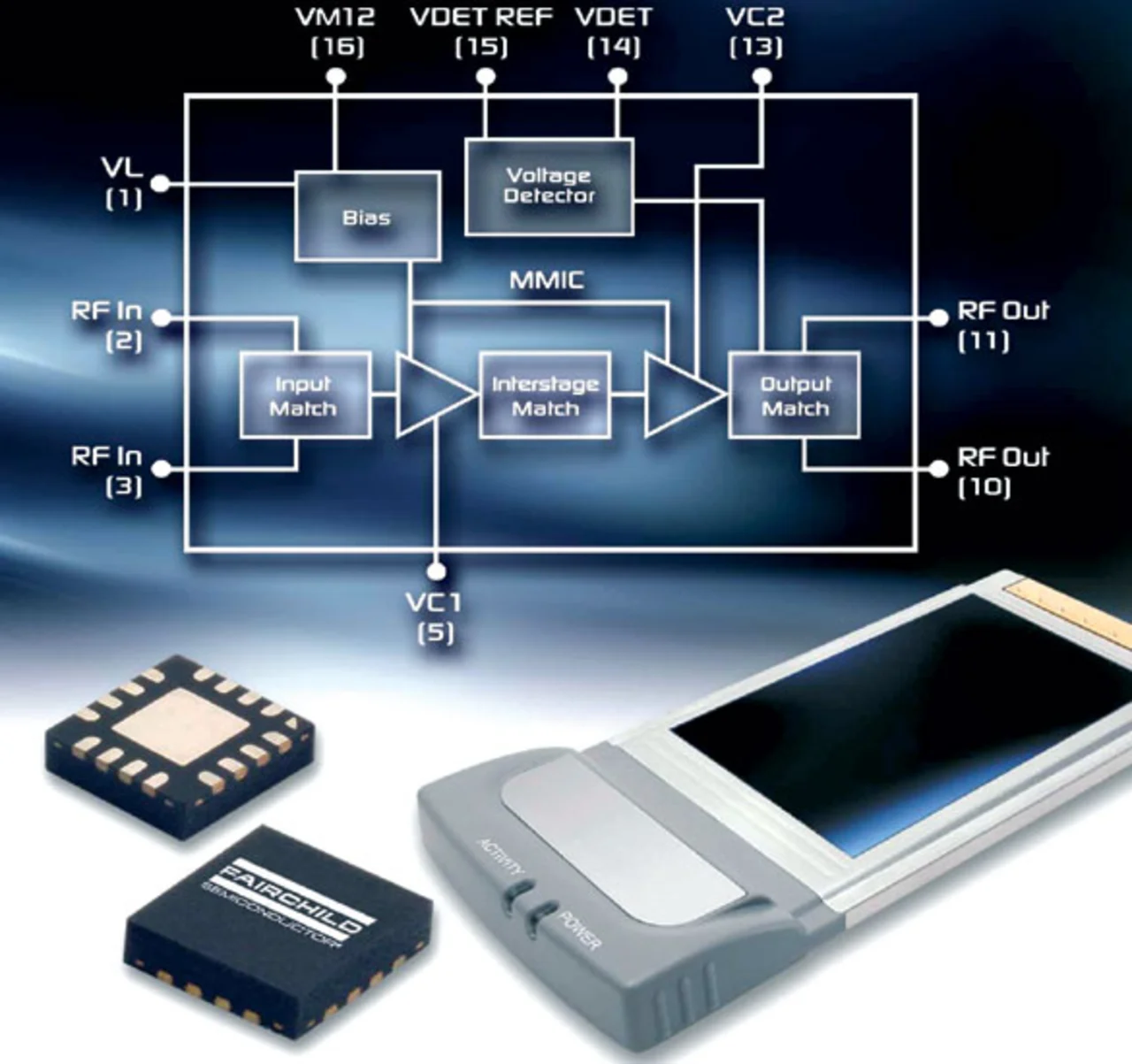Fairchild Semiconductor (www.fairchildsemi.com) hat unter der Bezeichnung RMPA2453 ein HF-Leistungsverstärkermodul (PAM) für WLAN-Applikationen im Frequenzbereich von 2,4 bis 2,5 GHz angekündigt (Bild 1). Es ist für Wireless-LAN-802.11b/g-Applikationen optimiert und bietet als besonderes Merkmal, so der Hersteller, eine EVM (Error Vector Magnitude) von nur 2,5 % bei einem Ausgangspegel von 18 dBm. Der geringe Leistungsverbrauch und die besonders gute Linearität des Leistungsverstärkers werden durch eine proprietäre InGaP-HBT-Technologie (Heterojunction Bipolar Transistor) erzielt. Der Verstärker verfügt über eine interne 50-Ω-Anpassung für Ein- und Ausgang und zusätzlich über einen Leistungsdetektor mit einem Dynamikbereich von 20 dB, über eine Leistungsbegrenzungs- und (optionell) eine Abschaltautomatik. Das neue Modul eignet sich besonders für eine Verwendung in WLAN-Routern, Access Points, Adapterkarten und USB-Dongles.