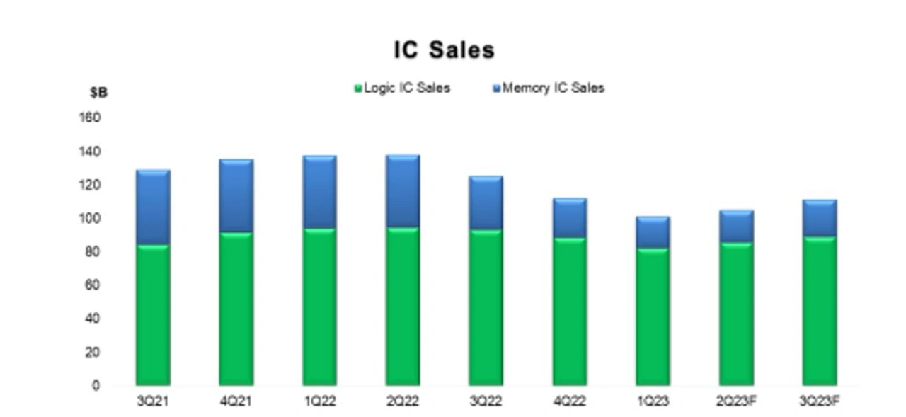 Diese positive Annahme beruht darauf, dass die sequenziellen Umsatzrückgänge im Halbleitermarkt anfangen, sich abzuschwächen. Diese Tatsache werten die SEMI-Experten in Zusammenarbeit mit TechInsights dahingehend, dass sie davon ausgehen, dass sich die weltweite Halbleiterindustrie dem Ende des derzeitigen Abschwungs nähert und sich voraussichtlich 2024 erholen wird. Für das dritte Quartal 2023 wird bereits wieder ein Wachstum von 10 Prozent im Vergleich zum Vorquartal prognostiziert. Sogar die Speicher-ICs sollen zum ersten Mal seit Beginn des Abschwungs (drittes Quartal 2022) wieder zweistellig zulegen können. Die Umsätze mit Logik-ICs wiederum sollen stabil bleiben.