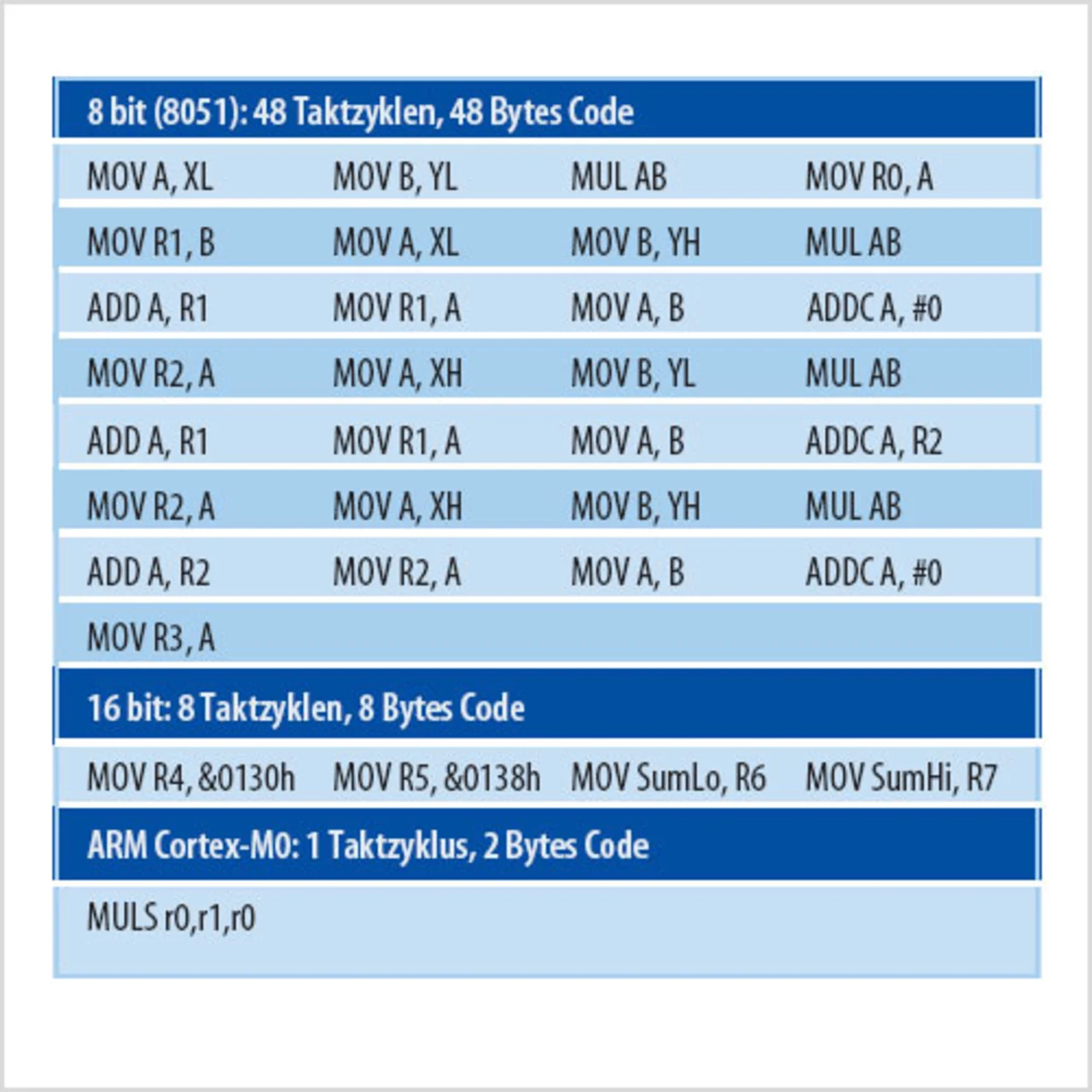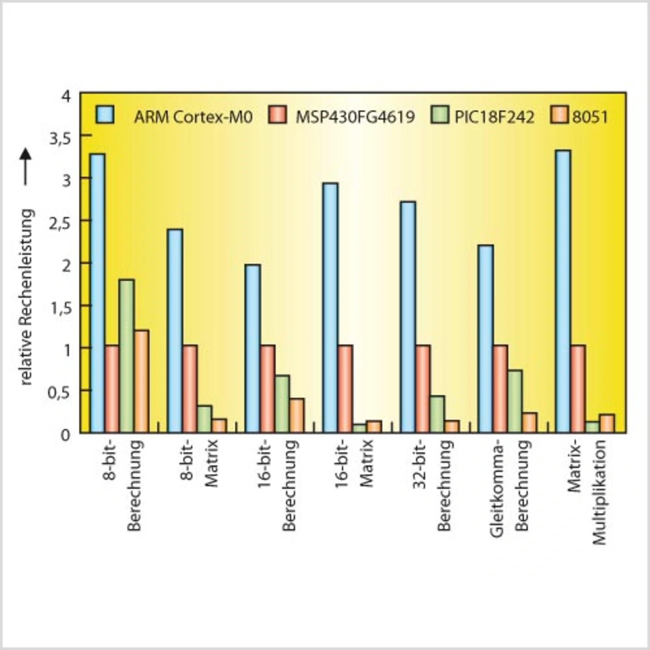 Diese und andere vergleichbare Anwendungen stehen im Focus des neuen LPC1100 von NXP (Bild 1). Viele 8-bit-MCUs sind für die Ausführung derartiger Aufgaben nicht ohne eine vergleichsweise hohe Taktfrequenz geeignet, was den Energieverbrauch in die Höhe treibt. Selbst 16-bit-MCUs haben den Nachteil, dass sie in Relation zu einer 32-bit-MCU einen größeren Anteil der Gesamtzeit im aktiven Modus verbringen und ihr Code mehr Speicher benötigt, was zu höherem Energieverbrauch, größerem Silizium-Bedarf und höheren Kosten führt. Der LPC1100 wird mit bis zu 16 Kbyte SRAM und bis zu 128 Kbyte Flash-Speicher angeboten, er enthält einen 10-bit-A/D-Wandler, einen UART, SPI-Controller sowie eine I2C-Schnittstelle. Des weiteren finden sich bis zu 42 I/Os und vier Timer. Zusätzlich gibt es noch einen Watchdog-Timer.
