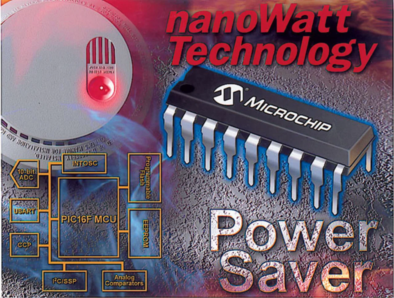 Vom vierten auf den zweiten Rang vorgerückt ist Microchip Technology aus Chandler/Arizona. Die neueste Entwicklung des Unternehmens sind die leistungsgesteuerten Mikrocontroller der 8-bit-PIC-Familie, die sich durch ein aufwendiges Power-Management (nanoWatt Technology) auszeichnen (Bild 1). Die Derivate aus der PIC16F-Baureihe verfügen über bis zu 7 Kbyte Flash-Speicher – realisiert in Microchips eigener PEEC-Technologie (Programmable Electrically Erasable Cell), über bis zu 368 byte RAM, 256 byte EEPROM, einen internen Multifrequenzoszillator (bis 8 MHz) und einen 10-bit-A/D-Umsetzer mit sieben Kanälen, ein Capture/Compare/PWM-Modul, zwei Komparatoren, eine USART, sychrone serielle Schnittstellen (SPI, I2C) sowie ein 16-stufiges Modul zur Unterspannungserkennung. Im Ruhezustand nimmt der Controller einen Strom von weniger als 1 µA auf und arbeitet mit einer Betriebsspannung von 2 bis 5,5 V.