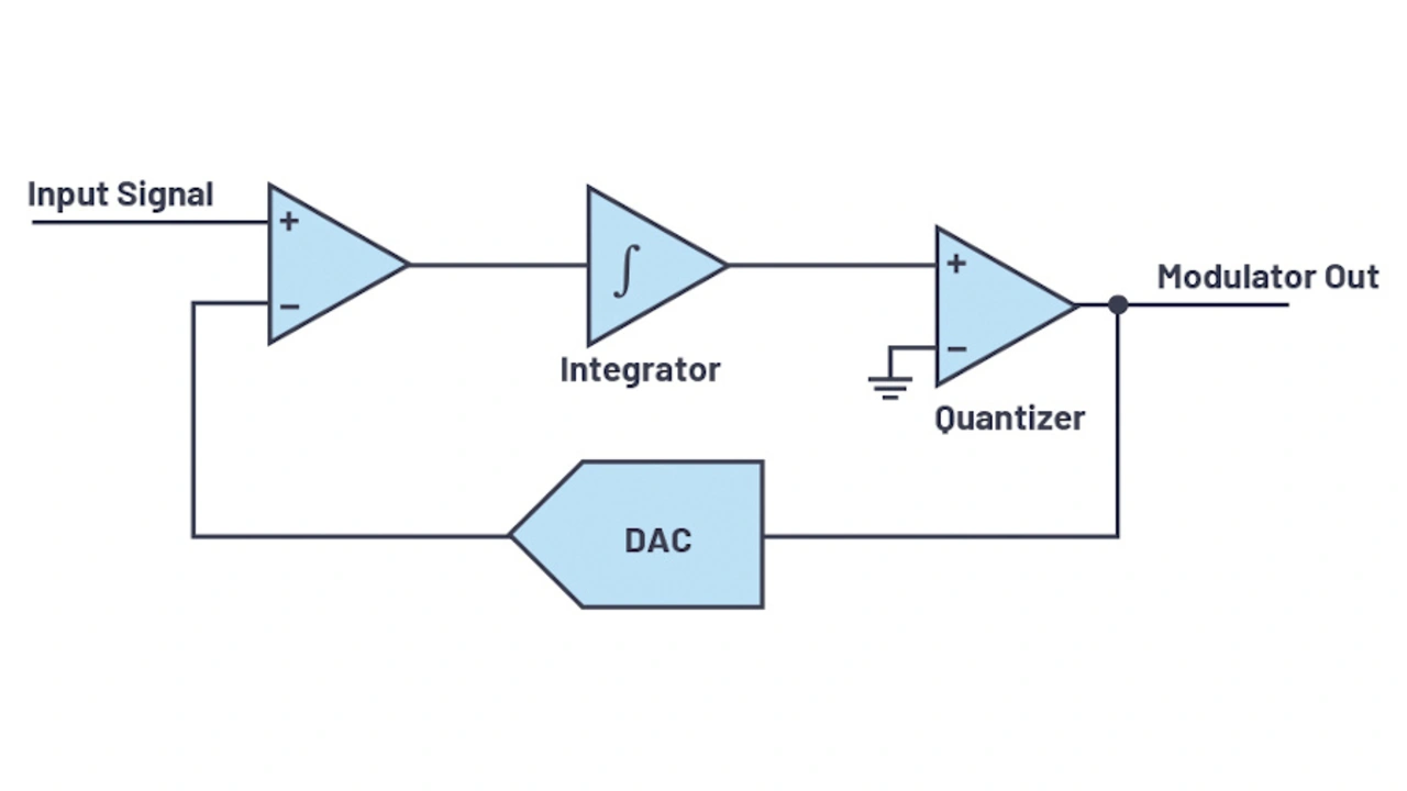 Die Rauschformung (Noise Shaping) ist eine weitere Technik, mit der sich das Quantisierungsrauschen verringern lässt. In Sigma-Delta-ADUs wird ein gering auflösender Quantisierer (1 bis 5 bit) in einer Schleife nach dem Schleifenfilter eingesetzt. Ein DAU dient als Rückkopplung-Glied dazu, das quantisierte Signal vom Eingangssignal zu subtrahieren, wie in Bild 5 gezeigt.