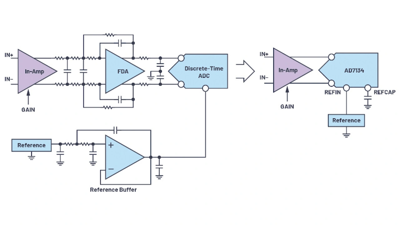 Die Referenzlast ist ebenfalls resistiv, was die schaltbedingten Kickback-Phänomene eindämmt, sodass kein separater Puffer am Referenzeingang nötig ist. Der Widerstand für ein Tiefpassfilter kann zudem im IC implementiert werden, sodass sich sein Verhalten parallel mit der integrierten resistiven Last verändert, da beide aus demselben Material bestehen. Das Resultat ist eine reduzierte Temperaturdrift des Verstärkungsfehlers.