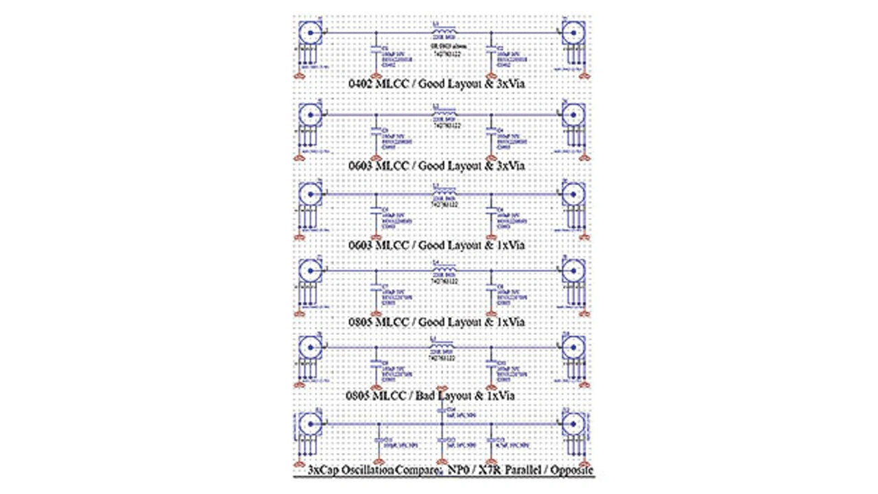 ➔Länge der Leiterbahnen zu den Lötpads der MLCCs (ändert den resultierenden ESL des MLCC).