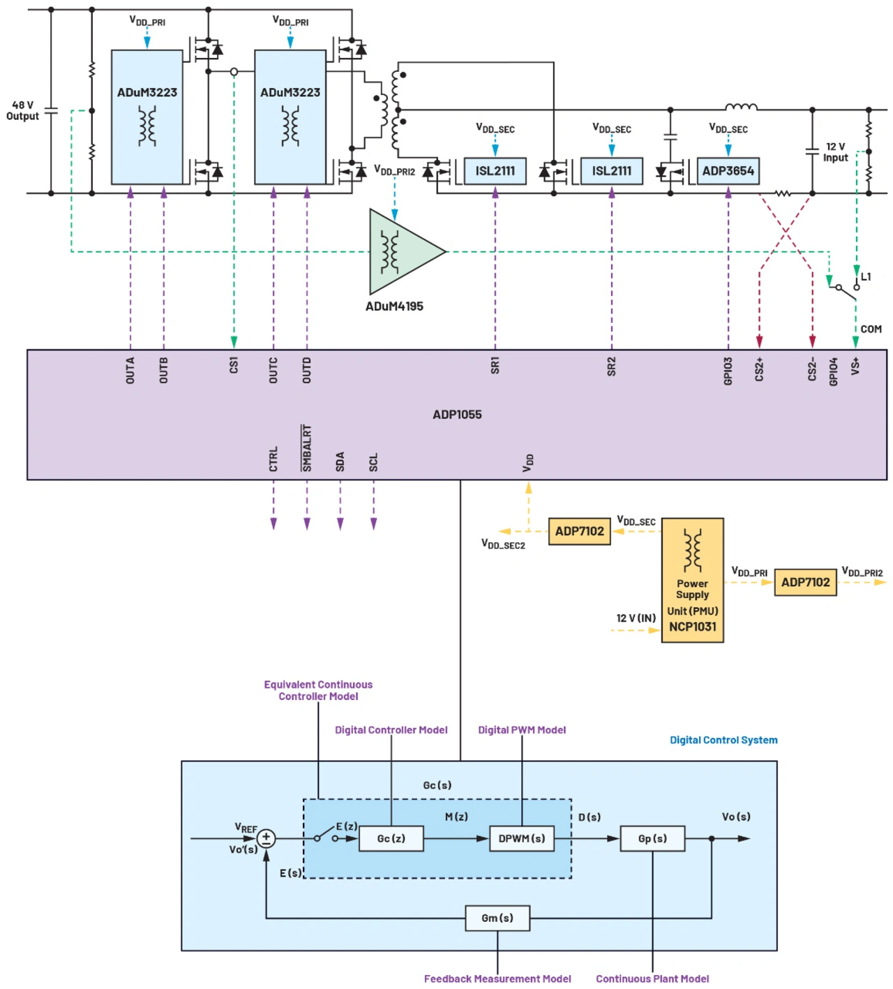 In den folgenden Abschnitten wird gezeigt, dass spezielle Digitalregler für die Leistungsumwandlung eine gute Alternative für eine sichere und zuverlässige Implementierung des gewünschten DC/DC-Wandlertyps sind, indem diese Regler (die normalerweise nur für die unidirektionale Leistungsübertragung ausgelegt sind) an den bidirektionalen Betrieb angepasst werden.