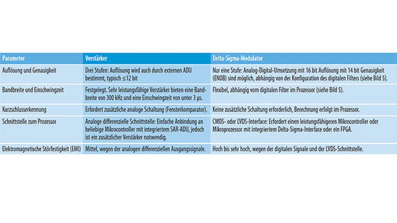 Für aus dem AC-Netz gespeiste Wechselrichter mit Gleichspannungs-Zwischenkreisspannungen von 300 bis 1.200 V ermöglicht ein isolierender Verstärker oder Delta-Sigma-Modulator eine präzise Phasenstrommessung mit Widerständen. Die Isolation erlaubt ein Unterdrücken der hohen Gleichtaktspannung sowie der Transienten (siehe Tabelle 1). Da industrielle Antriebe den Anforderungen an die elektrische Sicherheit gemäß IEC 61800-5-1 genügen müssen, ist eine Basisisolation oder eine verstärkte Isolation erforderlich. Basisisolierte oder verstärkt isolierte Verstärker und Delta-Sigma-Modulatoren erfüllen diese Forderung.