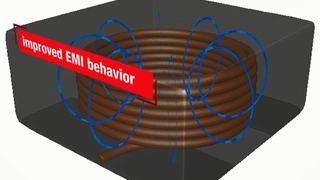 In der Anwendung wird in der Regel der Start der Wicklung der Spule mit dem Schaltknoten des Schaltreglers verbunden – das Bauteil trägt dazu eine Markierung. Dadurch minimiert sich die räumliche Ausdehnung des „heißen“ Schaltknotens und Kopplungseffekte durch den äußeren, auf „ruhigem“ Potential bezogenen Teil der Wicklung sind abgeschirmt (Bild 2).
