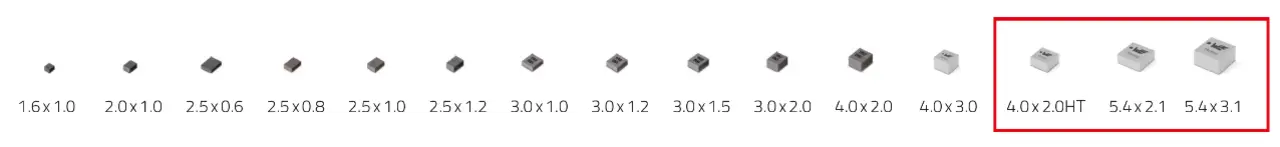 Die WE-MAPI ist in vielen verschiedenen Bauformen erhältlich, von 1,6² x 1,0 mm3, bis hin zu 5,4² x 3,1 mm3 (Bild 3).