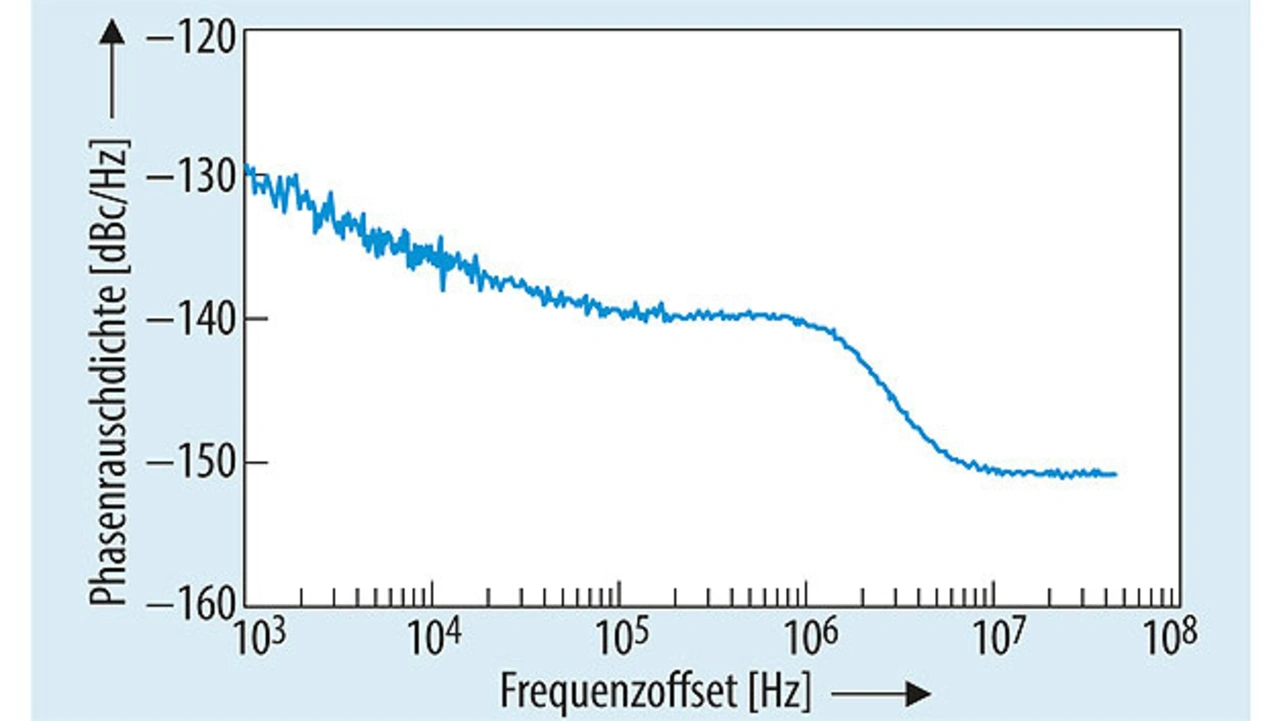 Darstellungen der Phasenrauschdichte werden üblicherweise mit Taktquellen und PLL-Spezifikationen mitgeliefert. Ausdrucke wie der in Bild 4 sind für Taktgeneratoren mit niedriger Frequenz seltener. Sie werden üblicherweise in AD-Umsetzern mit Überabtastung eingesetzt und deshalb wird statt der Phasenrauschdichte der gesamte Jitter – Effektiv- oder Spitzenwert – angegeben.